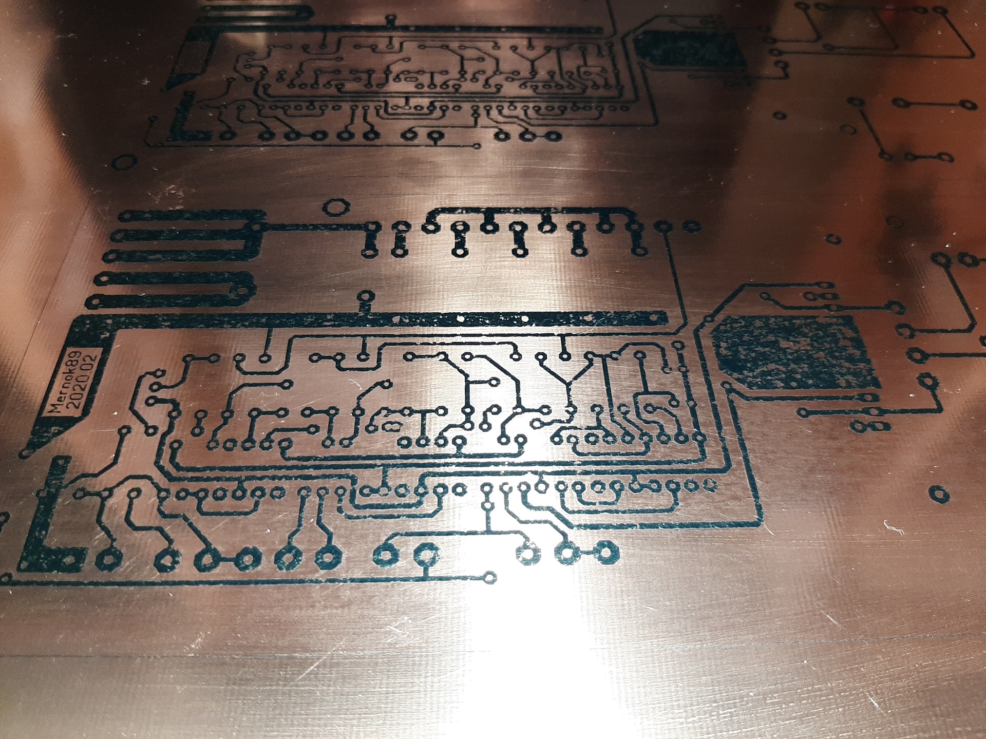 Szia. Műnyomó papítta minimum 2400bpi vel kell nyomtatni, festék kímélés nélkül. A vasalót nem nyomjuk, csak rárakjuk a papirra, nem vasaljuk, ha nahyobb nyák akkor vasaló felemelésével melegítjük, nem a papíron húzzuk. Ha jól felmelegedett, a rajzolatot kell a papíron látni. Ezután vasaló levesz, és én egy papírzsebkendővel finoman el szoktam még simogatni. Megvárom míg kihül a panel, és csak utána áztatom vízbe.