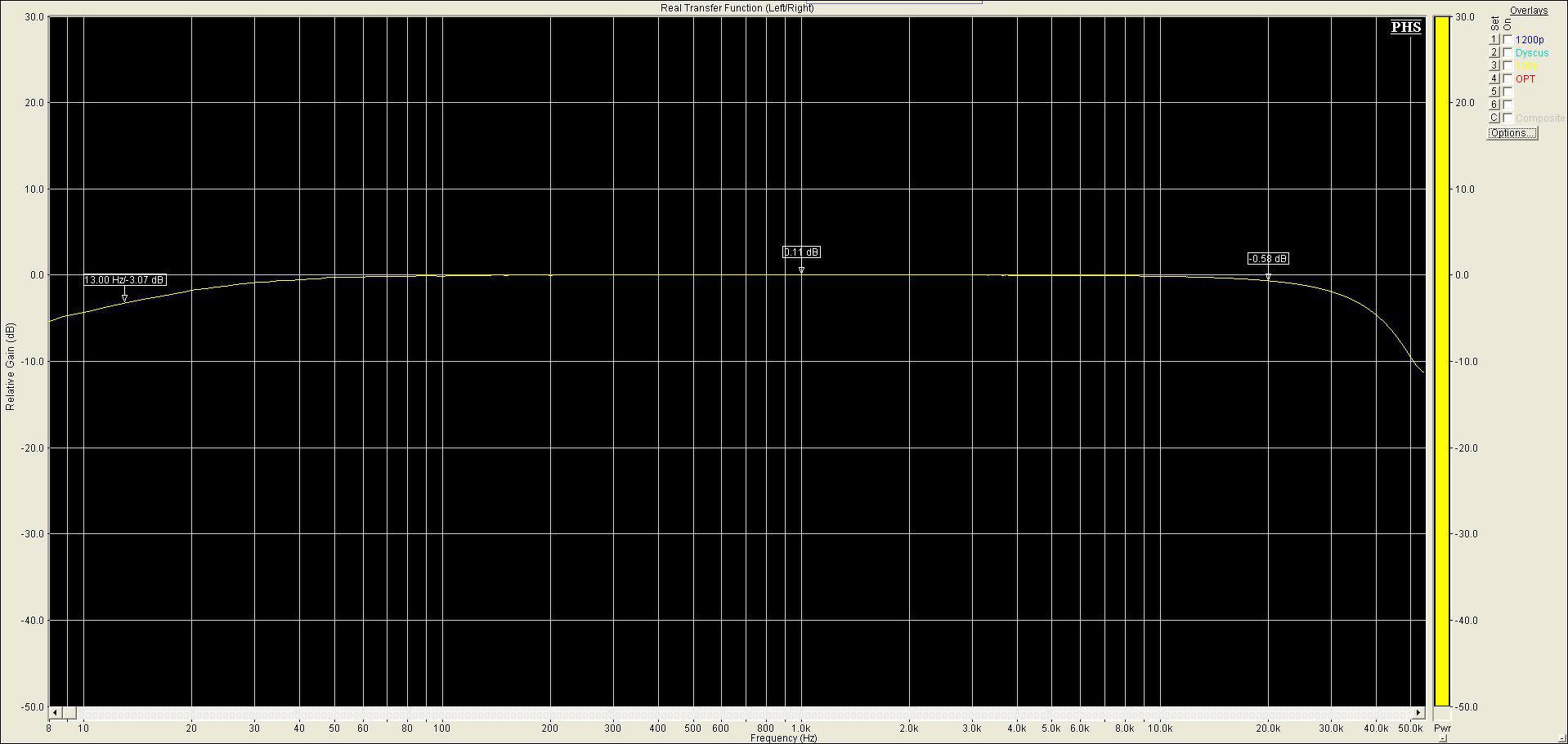 Ikka 56 kollega fentebb feltett egy-két jogos kérdést Nos mivel a mérőrendszerem a számítógép miatt még nem alkalmas nagy feszültségen való mérésekre, ezért ide teszem a kész erősítő átvitelét ezzel a kimenővel. A mérés szabvány szerint az erősítő 50%-os kivezérlésénél készült. Megjegyzem, ez egy nagyon egyszerű SE erősítő triódába kapcsolt csővel, 0 dB NFB-vel ellátva. Az átvitel különösebben nem változott, legfeljebb csak a mély átvitel csökkent kb 0,5dB-t a tekercsen átfolyó áram miatt. Viszont érdekesnek tartom az igen fontos fázis diagrammok összehasonlítását. Jól látható, hogy az in situ mérésnél a fázis-freki görbe egyenesebb lett. Úgy tűnik, hogy az elektronika fázisátvitele jobb mint a kimenő ugyanezen paramétere. Mondhatni azt, hogy az erősítő fázisátvitele javítja a kimenőtrafó fázisátvitelét. Ez nyilván fordítva is igaz, csapnak majd le a kedves kollegák. Nos igen, de akkor nem szól az erősítő.