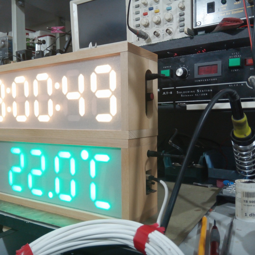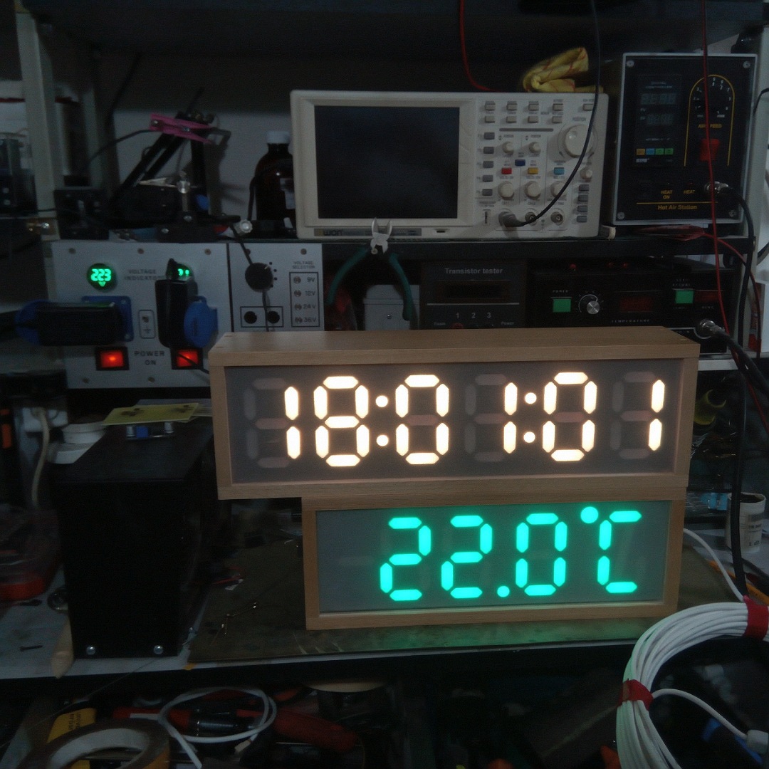 Építettem egy saját kijelzőt, habosított PVC-ből, majd összeeaktam belőle egy digitális órát, és egy hőmérőt. WS2812B ledek vannak benne, így a szín is állítható. No és a fényerő. Külön köszönet Gautier Péternek a program létrehozásáért.