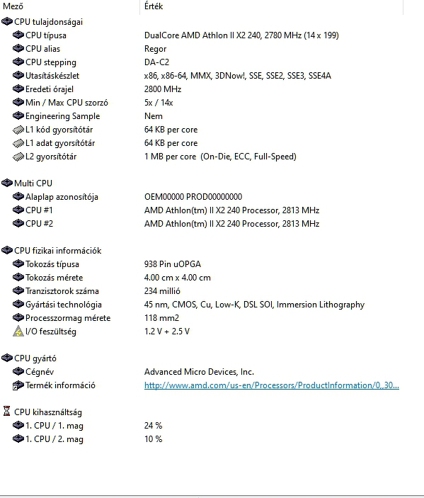 Ez a proci tudásában egy E5300/E5700-as szintjén van (amit alaplapostul házastul tudok adni ingyen is) Nézz körül a Hardveraprón. Ha kb. 20 ezret szánnál a lap+proci párosa, egy nagyságrenddel erősebb gépet tudsz összerakni. Én a helyedben vennék egy használt 1155-ös lapot, azok olyan 8-9 ezerért mennek, de olcsóbban is ki lehet fogni. Lehetőleg 4 slotost, így olcsón tudsz sok DDR3 RAMot belepakolni, de ha nem kell 16Gb, akkor 2 slotos is bőven jó. Hozzá egy 3 ezres i3 2120 100%-kal erősebb, mint ez a proci. Vagy 8 ezerért egy i5 3470 190%-kal erősebb. Esetleg 12-ért egy i5 3570-et, ezek a konfigok tapasztalat alapján nagyon jól bírják, és a gyári hűtővel jól elvannak. i3 2120 alá semmikép nem mennék, nagyon hamar használhatatlan lesz, és a használtpiaci értéke is leesik, mivel nem lehet upgradelni. Ja, 2*4GB DDR3 RAM hardveraprón olyan 6500Ft, 1*8GB meg 7000Ft. Ha nem tudod, mit válassz, küldök konkrét hirdetéseket is, de ezek általában 1-2 nap alatt elkelnek, így hamar le kell csapni. Röviden: 1155 lap egy i3 2120 olyan 13 ezerért kétszer akkora teljesítményt ad. A hozzászólás módosítva: Márc 9, 2020