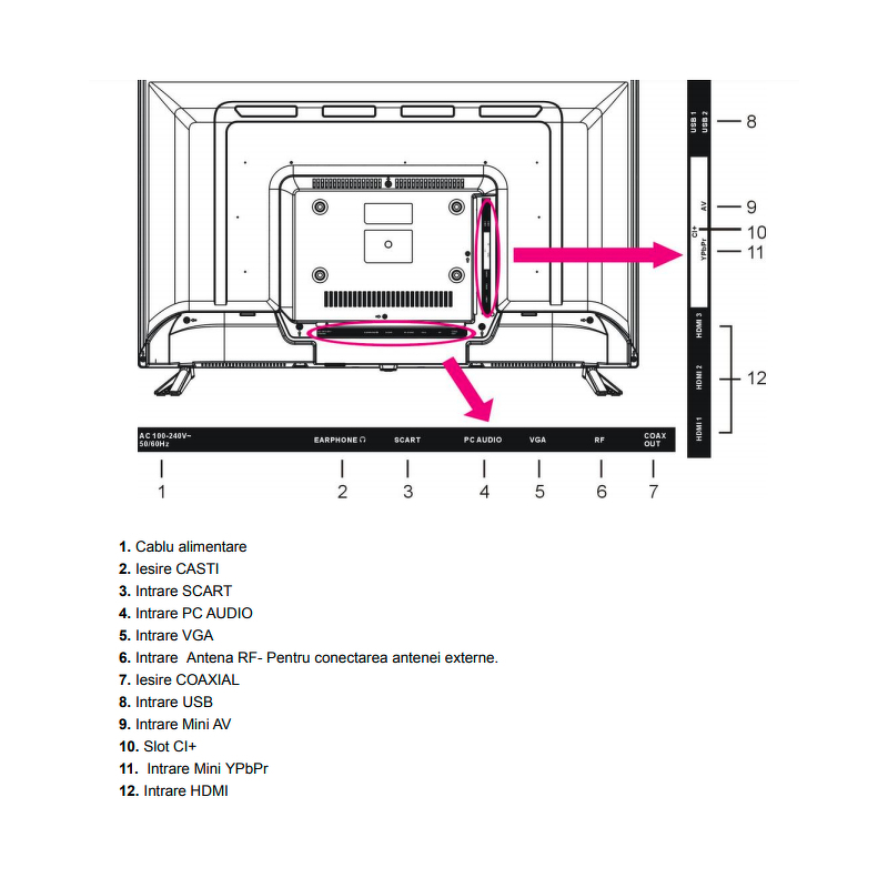 Felbontás 1366 x 768 TV tuner rendszer DVB-C DVB-T AUDIO JELLEMZŐK Beépített hangszórók teljesítménye 16 W KAPCSOLÓDÁS Portok 1 x SCART 3 x HDMI 2 x USB