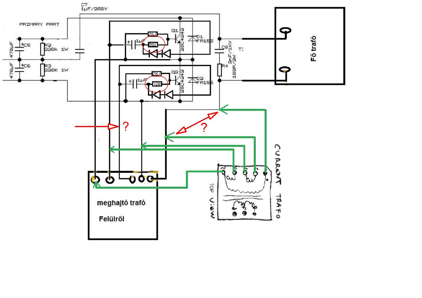 A probléma az, hogy a kapcsoló tranzisztorokat meghajtó trafó, meghajtása nem megfelelő...