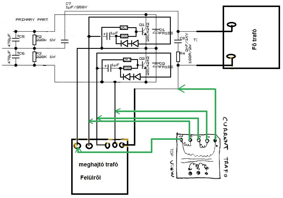 A trafó tekercsvégeire gondoltam, de akkor így jó, ha a kivezetések így vannak.
