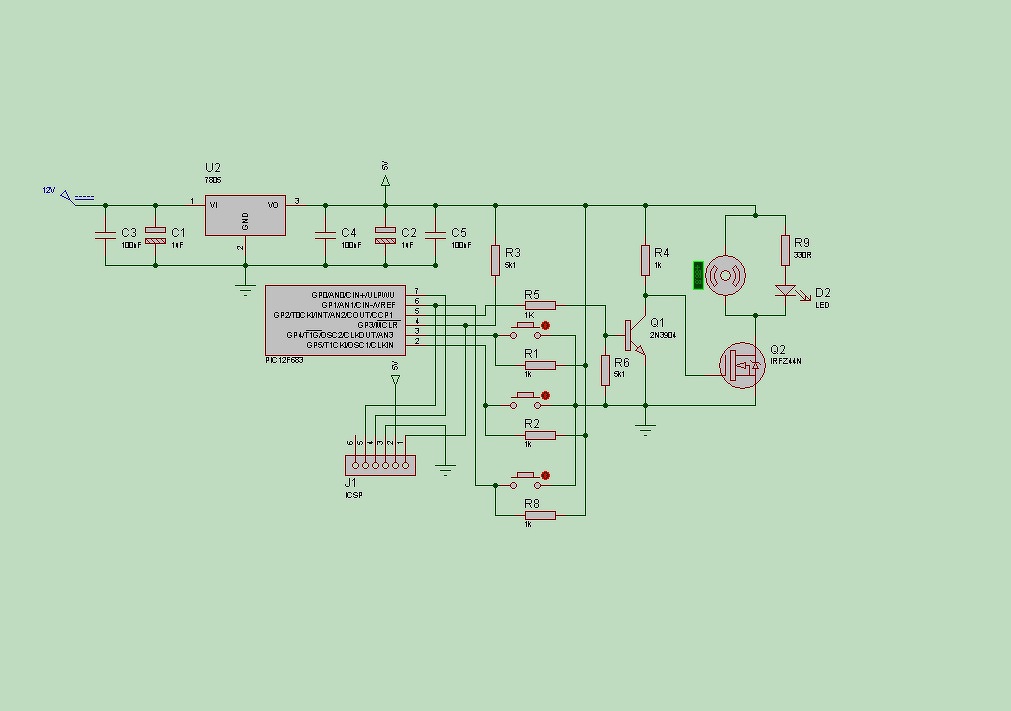 Régebben volt egy hobbiprojektem, aminek a rajzát átalakítottam picit, ennek az ellenőrzésében szeretnék segítséget kérni. A mostani rajzom alapján készült eszközt a következő szerint szeretném működtetni. A PIC-re három nyomógomb lesz kötve. Az egyik megnyomását követően a kimenetnek beállított ötös láb kapcsolja Q1 tranzisztoron keresztül Q2 FET-et. A terhelés az elvi rajzon egy villanymotor, a valóságban egy mp3 lejátszó lesz. A cél az, hogy az mp3 lejátszó X másodpercig szóljon, majd kikapcsoljon. A másik kettő gomb feladata lesz a szoftverben az X érték növelése és csökkentése. A kérdéseim a következők: -követtem el hibát a rajzon, amit esetleg nem vettem észre? -a célnak megfelelő a rajzom, elkezdhetem a programot megcsinálni szerintetek? -6-os láb és a gomb közé kell megszakítást beiktatni, hogy ha rádugom a PICKIT2-őt, és programozom, akkor az R8-on keresztüli tápfeszültség ne okozzon problémát, vagy ez szoftveresen kezelhető a PIC-ben? Köszönöm előre is a segítséget és a tanácsokat! Üdv: spgabor
