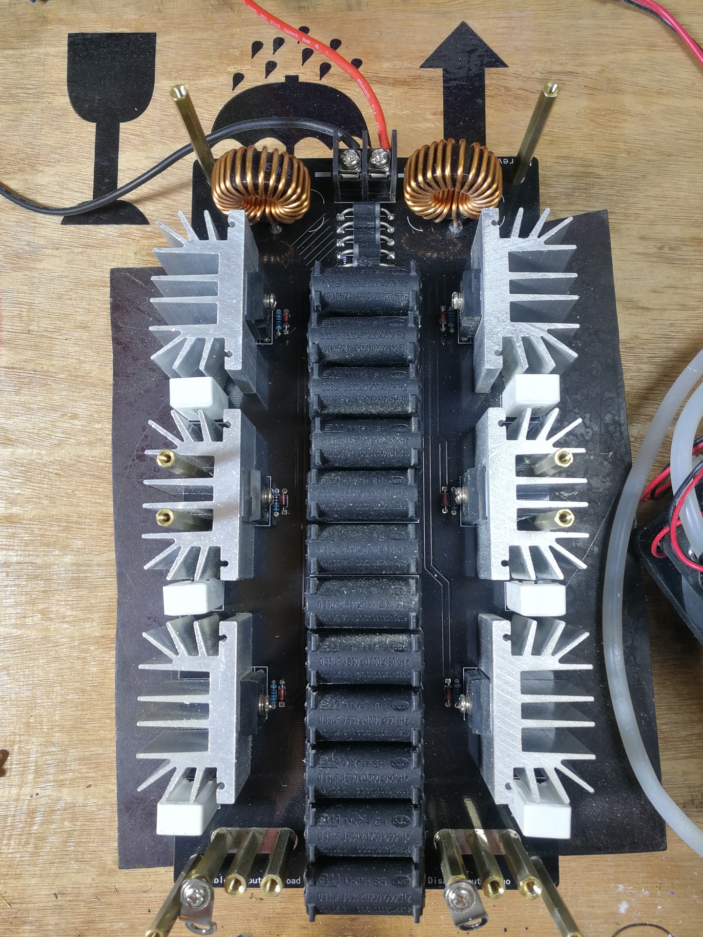 Erre már gondoltm én is de tekercset kell cserélni természetesen, meg nem árt egy leválasztótranszformátor (2kVA). Illetve ezek nem önrezgőek csak ha vasfém van benne akkor futtatja fel a teljesítményt, a feszültséget és áramot a rezgőkörben egy mikrokontroller méri és az alapján kapcsolgatja a teljesítményfokozatot,a frekvenciát de lehet a kitöltést is szabályozza. ami nekem van 1 és 2kW között melegíti a fazekat, 1kW alatt már a be ki kapcsolási idővel csökkenti a teljesítményt.