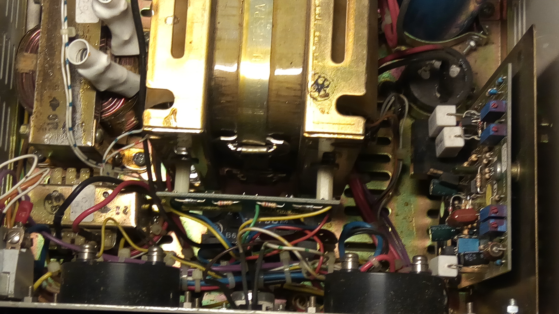 Sajnos olyan lehetetlenül van elkészítve, hogy ha bedugom a csatlakozójába nem férek hozzá. Teljesen szét kell robbantani az egészet és akkor is 2 m2 el fog foglalni. Az egyik kondenzátor párhozamosan a primer oldallal, a kapcsolónál. A két fojtó sorba egymással az egyik még valamivel összekötve a tirisztorok után.