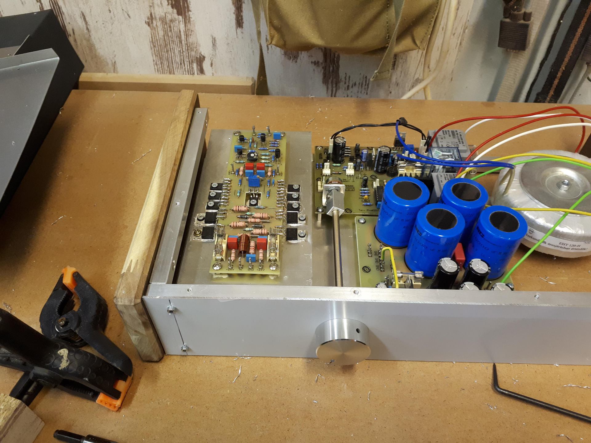 Végre lett rá időm, hogy anno épített mély láda erősítőm (ST151) vezérlését illetve védelmét újragondoljam. A lényege a kapcsolásnak ha a mozi erősítőt bekapcsolom elindítja/felkelti a mély láda erősítőjét( 12V trigger) Tehát a stand by led ki alszik s elkezd villogni az üzemet jelző led. Ez kb.:5 sec, s eközben nézi hogy a "nagy" trafó szekunderén megjelenik e váltó fesz majd csekkolja a végfok kimenetét. Ami most +/- 1V ra van állítva gnd-hez képest. Azaz ha ekkora vagy nagyobb egyen feszültség jelen van a kimeneten nem húzza meg a hangszóró kimenetével sorba kötött relét s ekkor villogni kezd felváltva az összes led a készüléken. Azaz a stand by led, védelem s az üzemi led. Egyébként ha minden rendben van akkor csak üzemi led villogást abba hagyja s világít. Üzem közben 3 dolgot figyel az elektronika: hangszórón lévő DC feszt, "nagy" trafó szek feszültségét, illetve a trigger jel meglétét. Nem nagy valami, de végre úgy üzemel az erősítőm ahogy elképzeltem Esetleg érdekel valakit több infó szívesen megosztom, prg, kapcsolás, nyákterv stb Korona mentes szép napot mindenkinek!