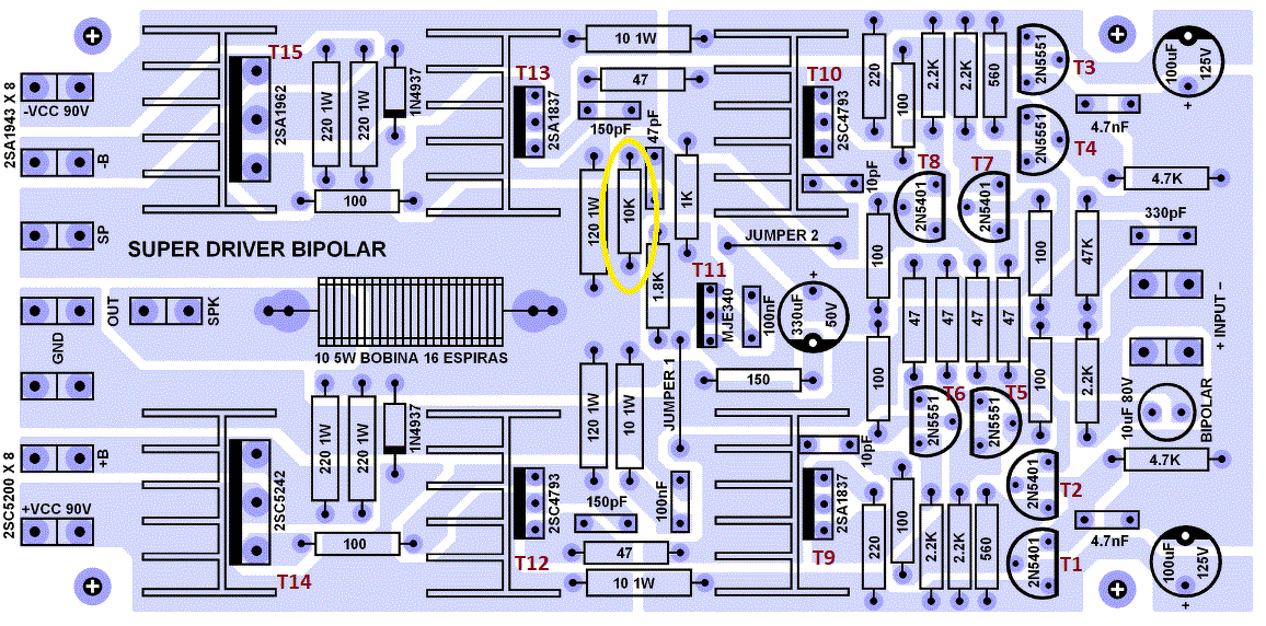 Készítettem egy tranzisztor-pozíciószámos ábrát. Ha mérséklődik a feszültség mászkálása, akkor az alapján írd meg a T1-T8 tranzisztorok E, B, C feszültséget, mint korábban is tetted.
