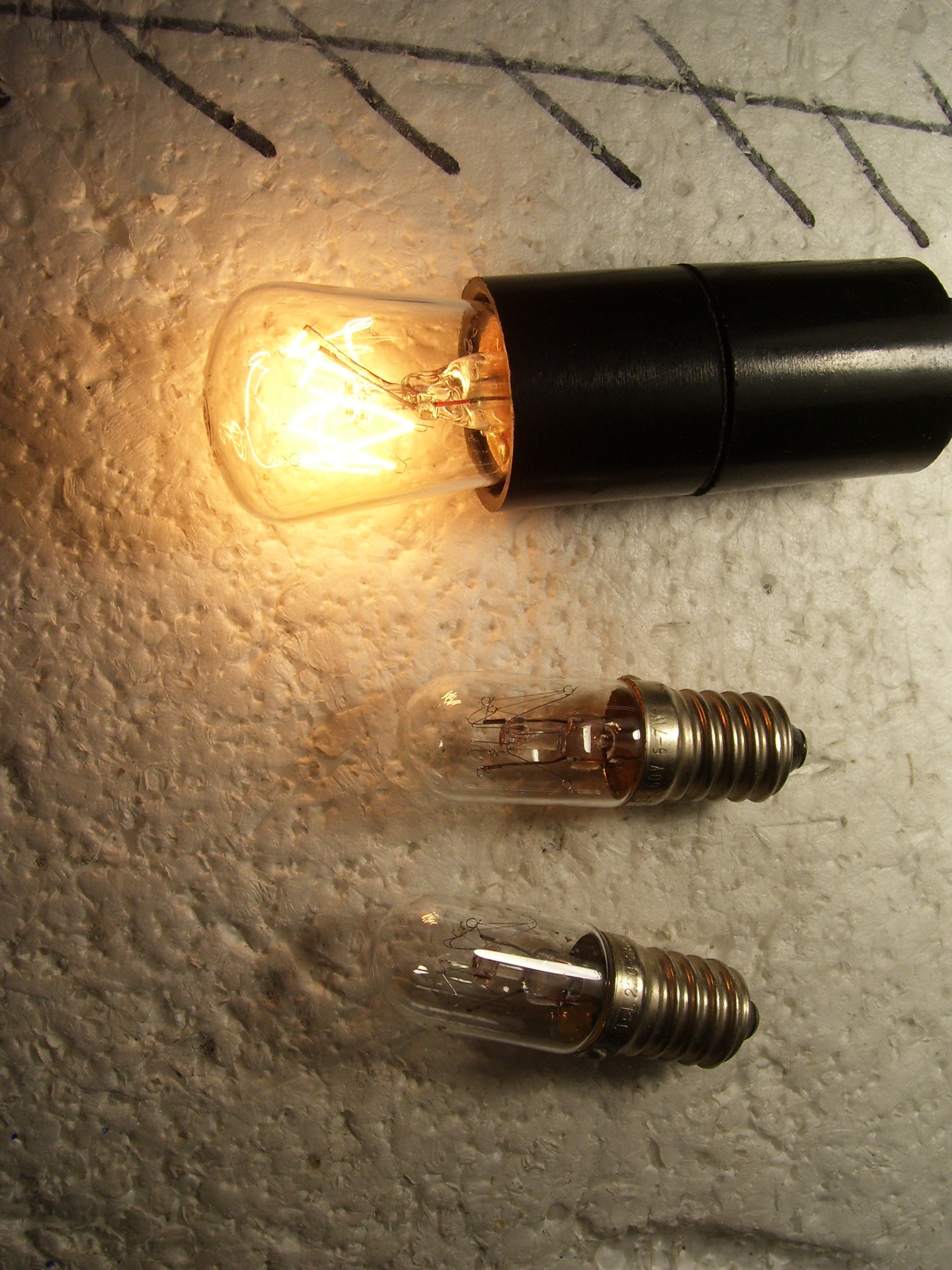 15 W-osban is van izzó kis burával. Lást varrógép izzó. Az 5-7 W-os semmit nem ér.