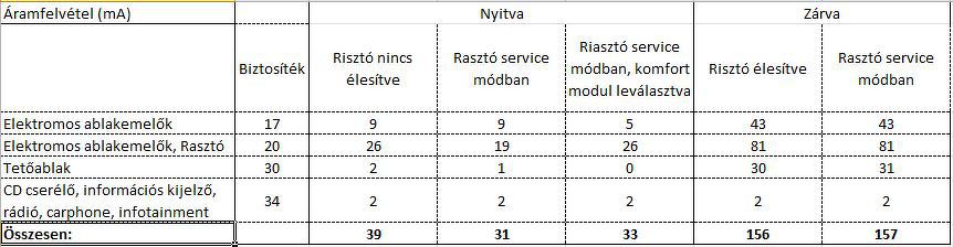 Ezen kívül Multiméterrel pontosabban is lemértem a dolgot, valamint megnéztem azt is hogy mi lesz ha a komfort modult leválasztom. A méréskor a belső világítás áramát figyelmen kívül hagytam, mert az normálisan működik. Tud valaki kapcsolási rajzot küldeni a komfort modul vezérelte ablakemelős és központi zár részről?