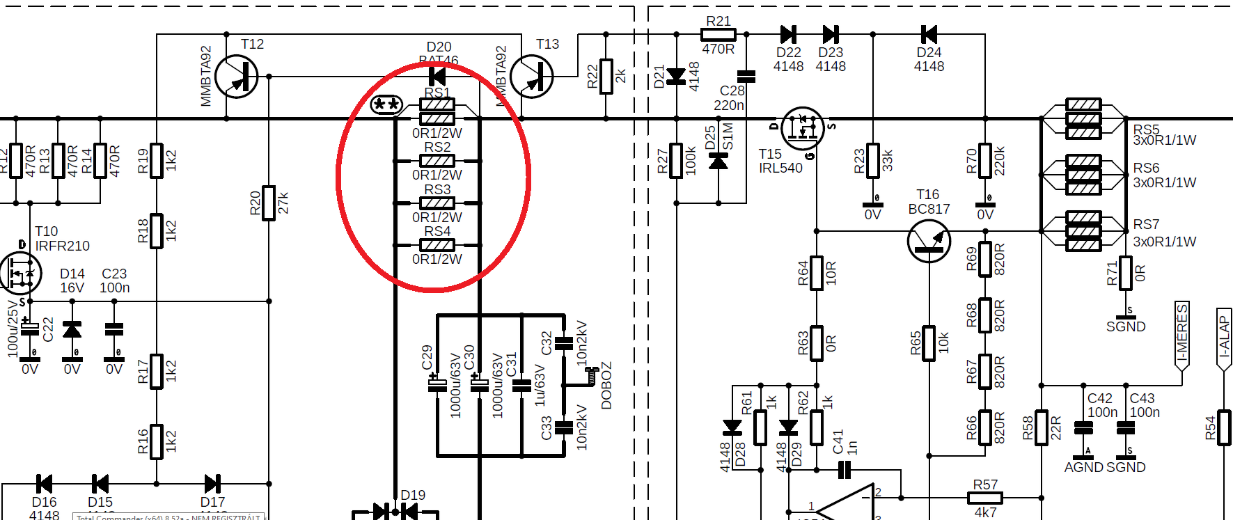 400V, 40A-re lett beállítva a méréshatár, ugyanakor az R27 és R29 ellenállást is betettem, amit nem kellett volna.