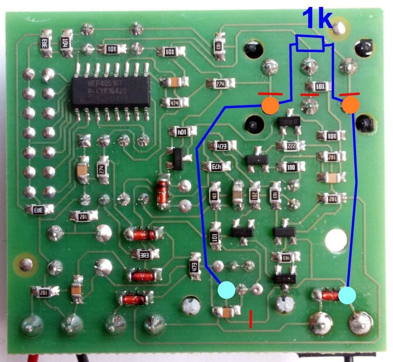 Igen, ezt az átkötési rajzot már megtaláltam máshol is, de nem vagyok műszaki ember, ha jól értelmezem, akkor a csatolt kép szerint a narancssárga pontok közé kellene beiktatni egy 1k-s ellenállást, valamint a világoskék pontokat közvetlenül összekötni a narancssárgákkal? Illetve a kérdés a piros "átvágásokra" vonatkozva, hogy azt pontosan hogyan kellene kivitelezni? Köszi és bocsánat a hülye kérdésekért :/