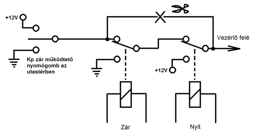 ![]() Meg kell szakítani a nyomógombtól jövő szálat, ezt jelzi az olló. A kapcsoló felőli szál megy a záráskor aktív relé NC-jére, ennek a COM-ja megy a nyitáskor aktív NC-jére, ennek a COM-ja megy az elvágott vezeték vezérlő felőli végére. Ez így a két alapból zárt érintkezőn keresztül ugyanaz, mint volt, úgy működik ahogy eddig. A záráskor aktív relé NO-jére megy a test, a nyitó NC-jére a +12V. Így záráskor megszakad az eredeti vonal és a vezérlő felé test impuzlus megy, nyitásnál ugyanez, csak +12V-al. Azt írtad, így működik. A hozzászólás módosítva: Ápr 30, 2020