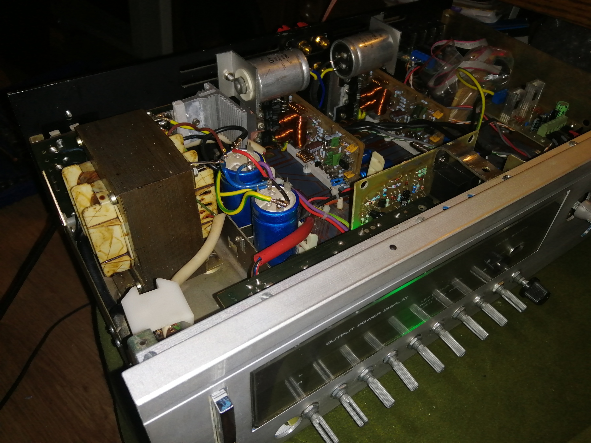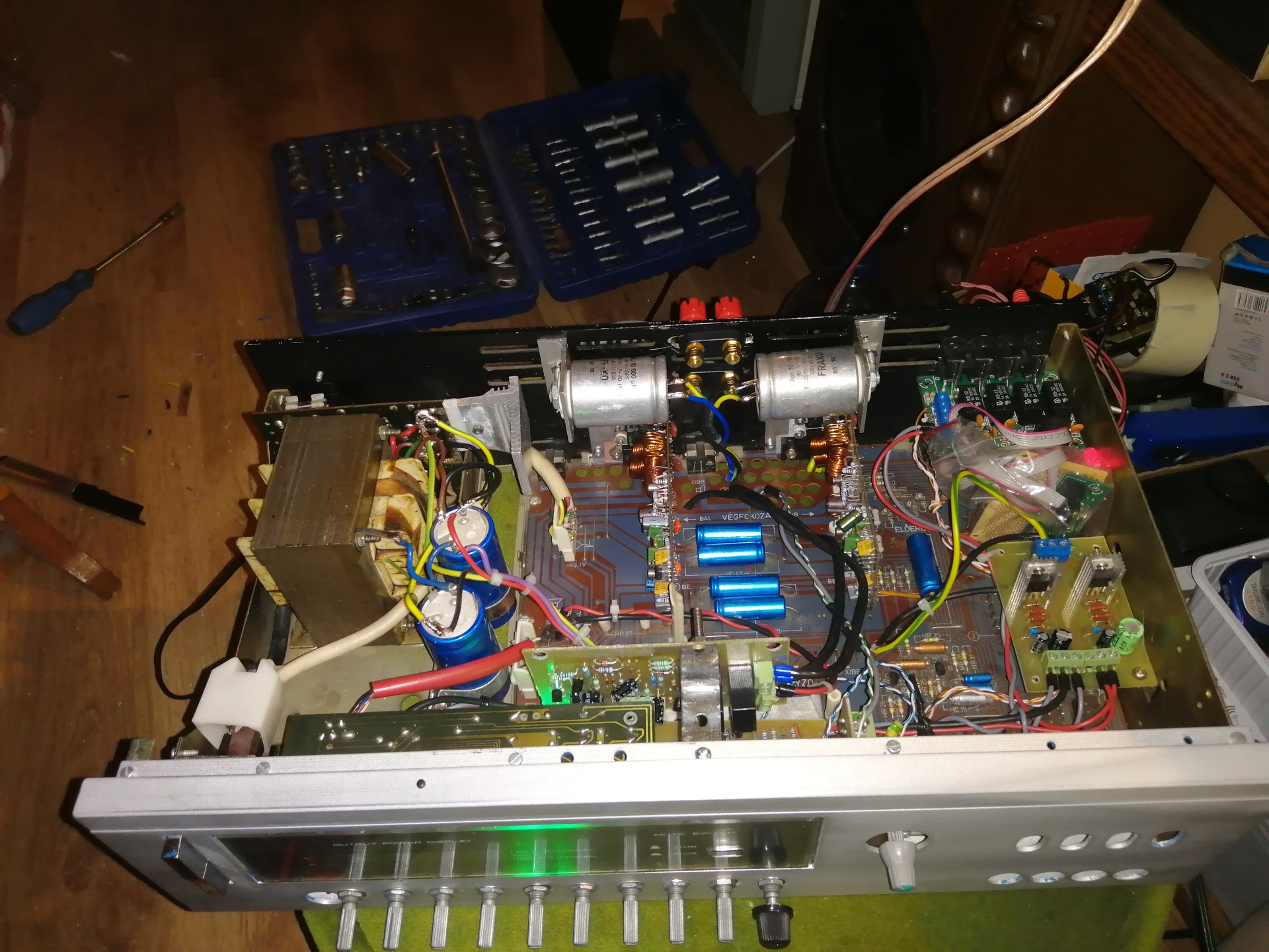 A panelen lévő elektrolit kondikat le cserélném tiszta újra (ezzel kezdeném), ha azt akarod hogy az erősítőd le adjon 100W-ot 8ohmon akkor érdemes a tápfeszültséget fel nyomni +-50V-ra.