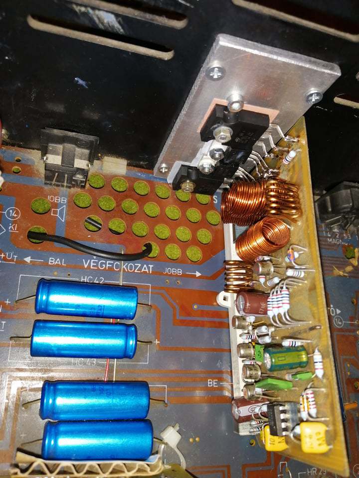 Segítséget szeretnék kérni. Hozzám került évekkel ezelőtt egy hifi erősítő dobozába épített quad. Szeretném átépíteni egy nagyobb dobozba, nagyobb táppal, mert 35vdc csak vegetálás volt szegénynek. Kibontva észrevettem, hogy az egyik panel elég gány módon javítva volt. Szeretném nagyjából egyformára kihozni a két végfokot, ezért gondoltam a végfoktranyókat újra cserélem. Egy beag 300w-os toroiddal fogom táplálni a 2 végfokot. Milyen tranyót érdemes belerakni, hogy megfelelően műkődjön és nem túl drága? Jó ez a bd249c- bd242c párosítás? Mit érdemes még cserélni beüzemelés előtt? A panelen lévő kondikat?