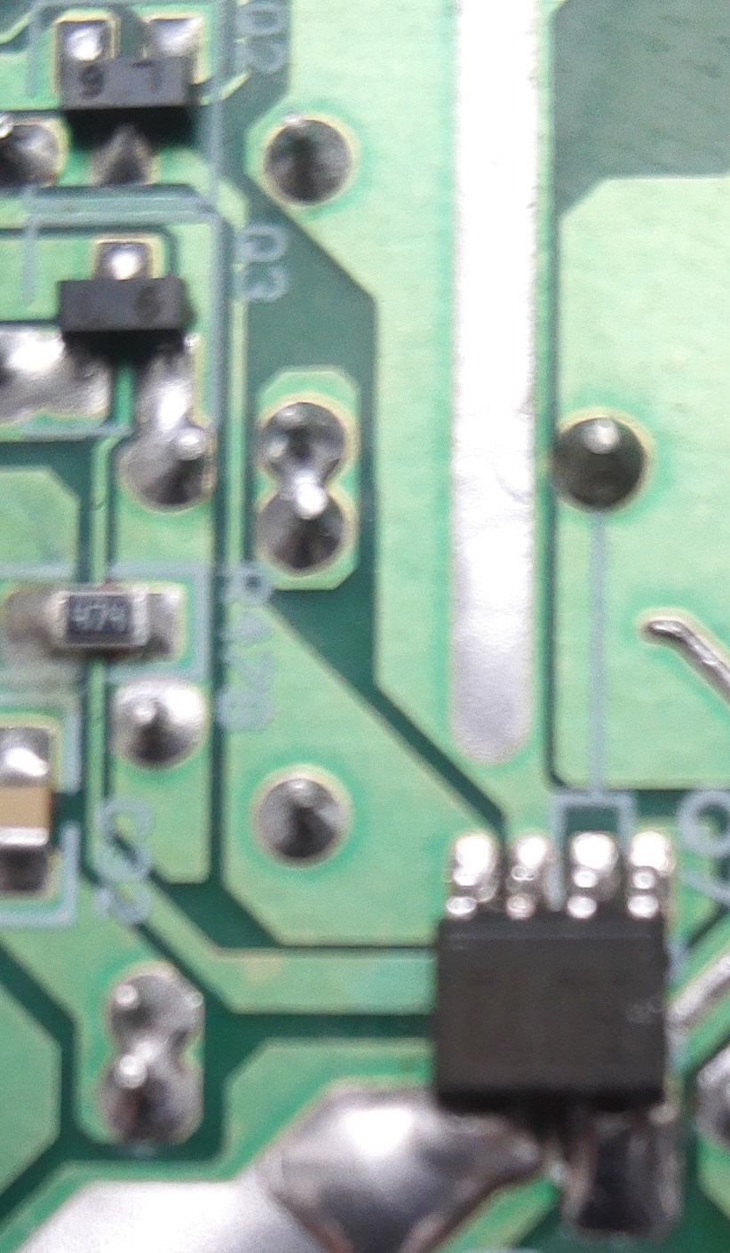 Segítsetek kérlek! Van egy pincezugból előkerült ceruza akku gyorstöltőm. Koracell KBC-V8000. Két ágon tölt két-két akksit. Az egyik ág elszállt. Szétszedtem és csakugyan az egyik szálon találtam egy átégett SO-8 as tokozású alkatrészt (4,97x3.86mm). Felirata RU72. Az egyik oldalon mind a négy lábba külön szál jön be, a másik oldalon az 1-2-es és 3-4-es lábakat közösítik. Elmentem mikroelektronikai szakboltba, hogy vegyek újat, de az eladó azt mondta fogalma nincs mi ez. A NYÁKlapon a betűjele Q, és Q jellel még találtam SOT-23 tokozású alkatrészeket, és ezek számozása egy rendszert alkot. A SOT-23 tokozású alkatrészre L6 van nyomtatva, egyik oldalán 2, a másik oldalán egy láb (ezekből sok van a NYÁKon.). A képen jobb alsó sarokban R72, bal felsőben két L6 (bocsánat, nincs makrolencsém). Kérdésem: az RU72 mi lehet? és honnan tudom beszerezni? Neten nem találtam, a boltos nem ismeri... Ha nincs, mivel helyettesíthető? Tudtok segíteni? Köszönettel enestis