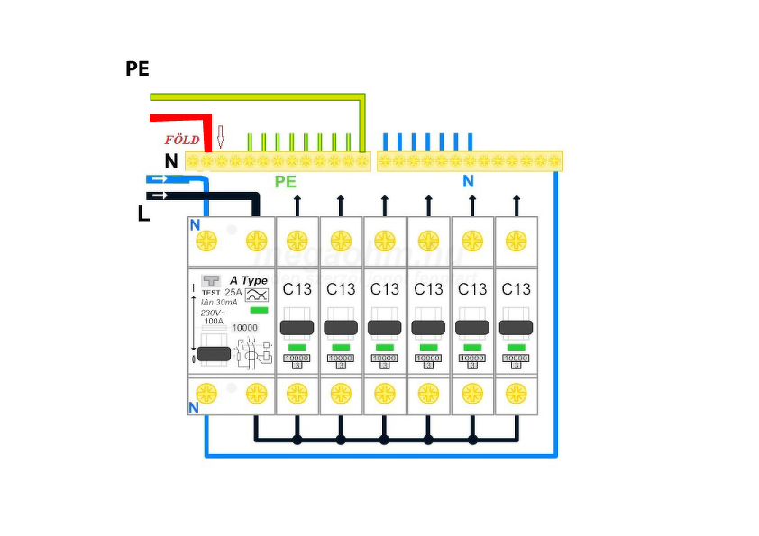Akkor az nem probléma ha a szétválasztás után van földelve? Eredetileg a fő földelő sínen kellene a pen vezetékkel egyesíteni és utána szétválasztani.