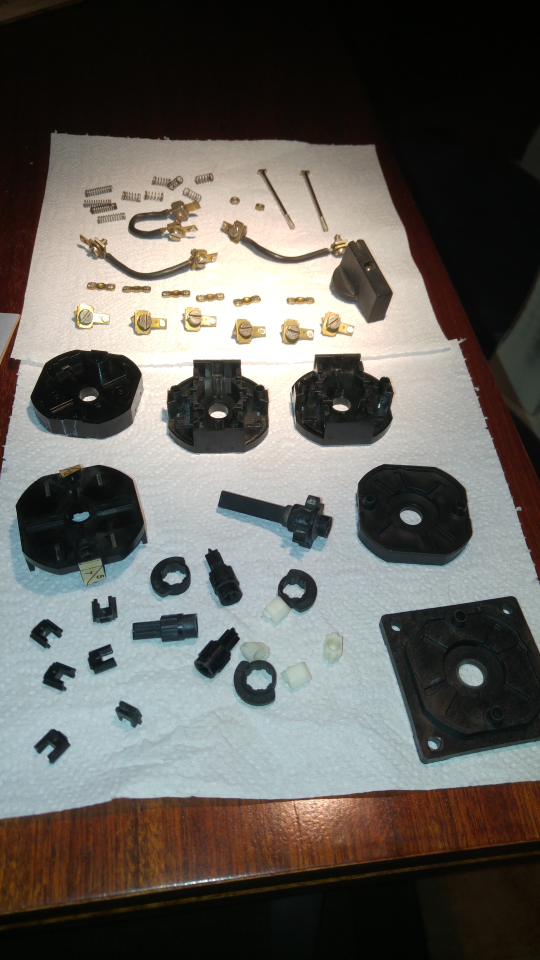 Az egyiket sikerült megcsinálnom. Ráment egy óra, de jó lett. Egy 5 forintos műanyag alkatrész tört el a kapcsoló tengelyében, szerencsére volt egy 6002-ben. Régebben ez fémből volt... A következő áldozat egy KK-0-4072. ez 8 állású, nem lenne baj, ha ezt is sikerülne életre kelteni.