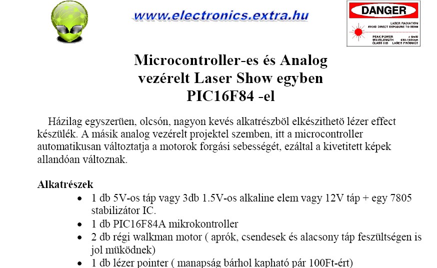 nézz el Csibi honlapjára! Ott van PIC-kel vezérelt lézershow, forráskóddal!