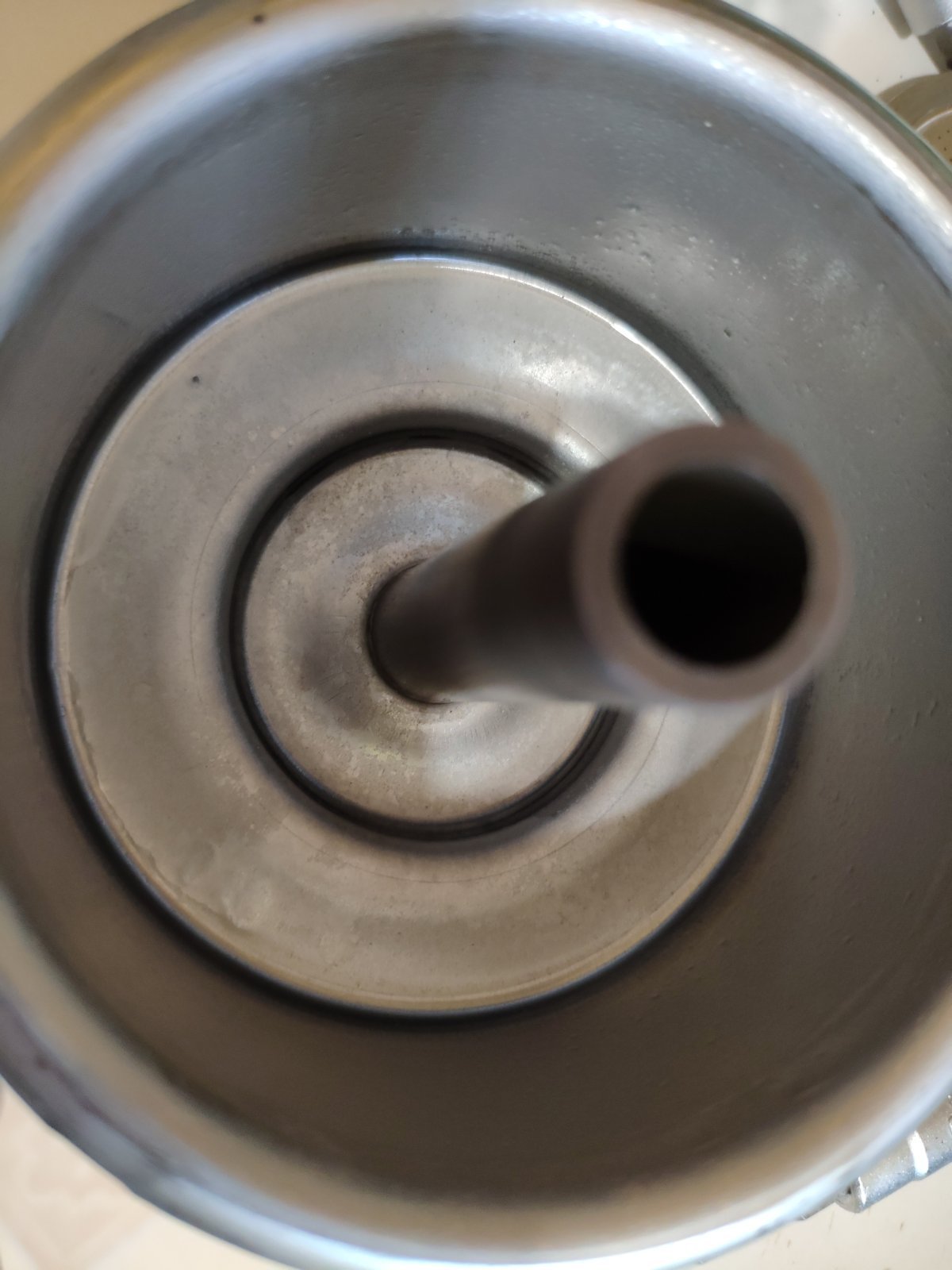 A felső szűrőt vedd le (ami a darált kávé felett van a gépben ,két csavar tartja) és nézz át a búvárcsövön . Vízkőmentesítésnél a maradék darabos cucc ott szokott megállni .