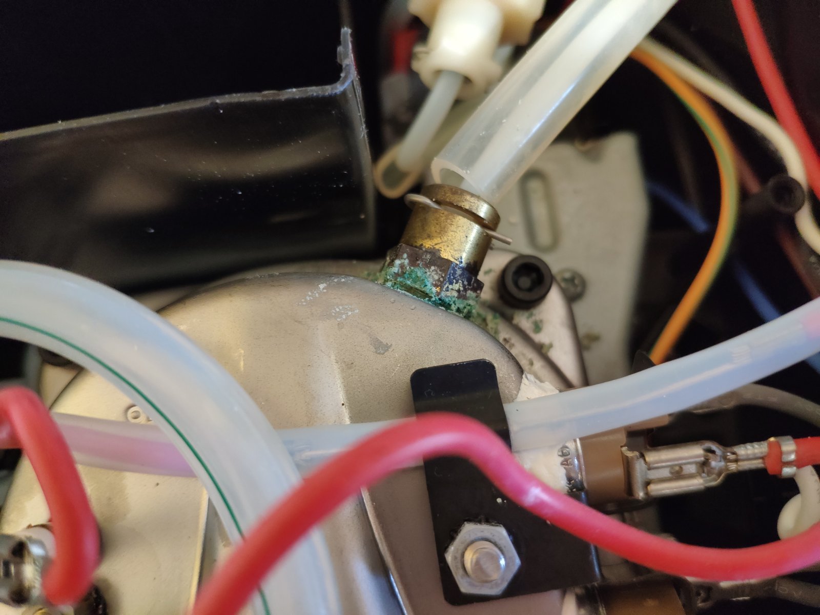 Adott egy Delonghi EC156 kávéfőző. Működik minden funkciója, viszont van egy olyan tulajdonsága, hogy a kazán rész és a körülötte lévő keret áram alatt van folyamatosan, bedugott állapotban, amikor a gép ki van kapcsolva, akkor is. Konkrétan életveszélyes. A képeken láthatóan, nem csekély, 125 voltot mértem rajta. Nem volt hozzányúlva, újonnan vettem 3 éve. Korrózió? a vízcső bemenetnél látszik egyedül. Ilyen hogyan történhet meg? Mi lehet a probléma? Köszi mindenkinek a választ!