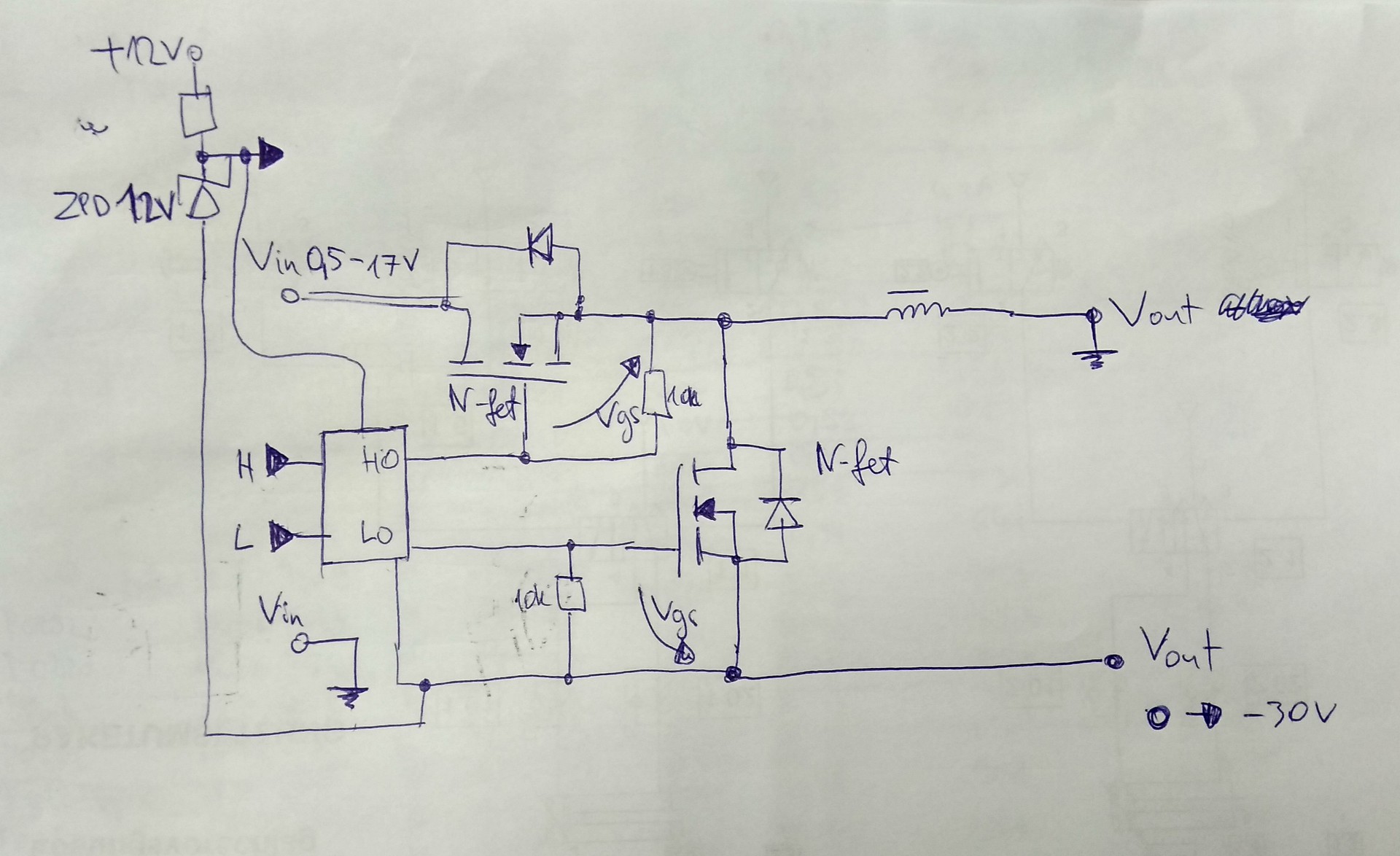 Ha a meghajtó a -30V +12V közé van kötve, akkor vigyáznom kell, mert 18V max bemenő feszültséget olvastam az egyik IC-nél. Ha a GND és 12V-ról táplálom az IC-t, akkor -30V kimenő esetén tud generálni -20V-ot a szinkronegyenirányító FET-nek (10Vgs-sel számolva?).