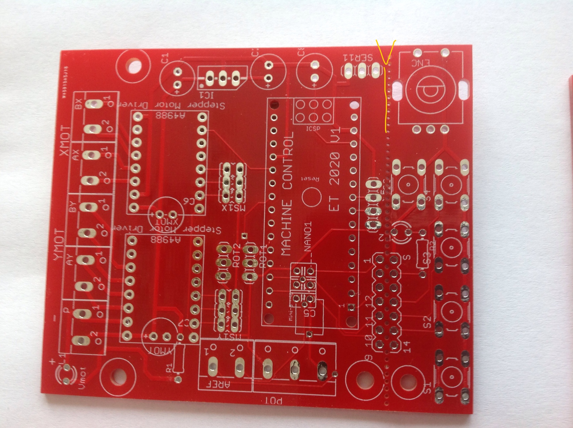 Eredetileg én is V-cutot akartam, hogy a vezérlési része az áramkörnek leválaszthato legyen, de azt tul drága lett volna, igy az ö tanácsukra végigfurattam a lapot és ott letörhetö a vezérlési rész.