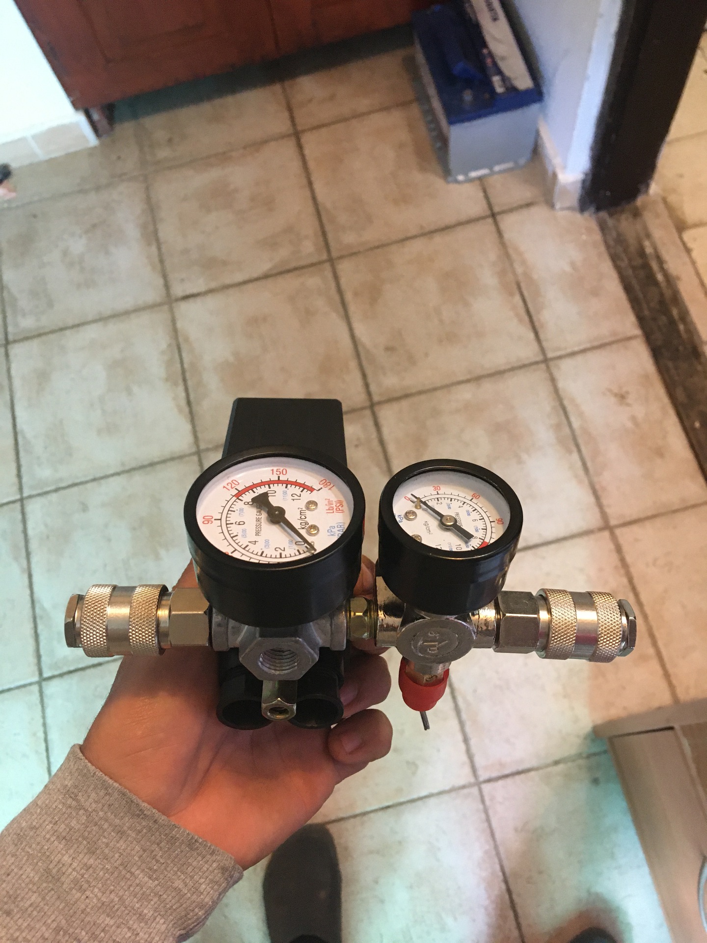 Szia! A kérdezőnek a nyomáskapcsolója, nyomásszabályzója magában foglalja a kimeneteket. Van egy direkt és egy szabályozható a hozzájuk tartozó feszmérőkkel plusz a biztonsági szelep. A "T" idom az jó megoldás lesz a csatlakozáshoz. Ha elfordítjuk a "T"-t 90 fokkal, akkor az oldalsó ágba csatlakozhatna a visszacsapó szelepen keresztül a kompresszor a té "teteje" pedig mint egy átmenetet képezne a tartály és a nyomáskapcsoló között. A tartály az mindenképpen meggondolandó, hogy elbír e akkora nyomást amekkorát szeretne a felhasználó.