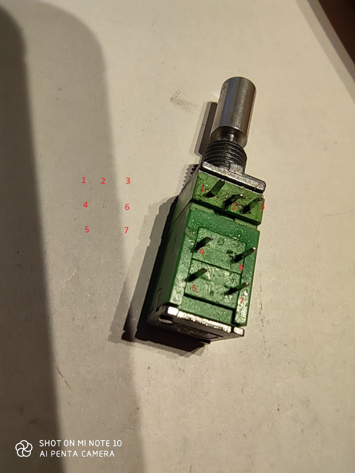 Ki forrasztottam a potmétert. A 2-es 1-es ;2-es 3-as láb között mértem 2.02 Kohmot persze tekergetve és működik.,mindkét irányban. A 4-es 5-ös láb között mértem ki-be kapcsolást.