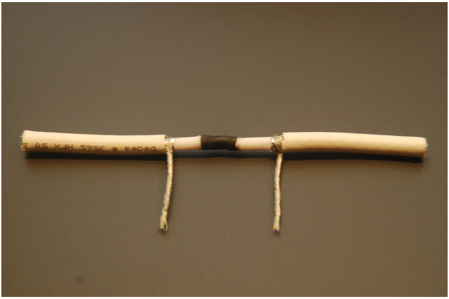 Csináltam pár demonstrációs képet az árnyékolás összeforrasztására. Nem találtam most több eres árnyékolt kábelt, ezért egy koax darabon mutatom meg. Koaxon egyébként az ilyen toldás jó kis reflexiókat okozna. Digitális TV adásnál lehet, hogy nem is működne, analóg adásoknál szellemképet okozna, de egy hall-szenzor vezetékénél ez nem probléma.