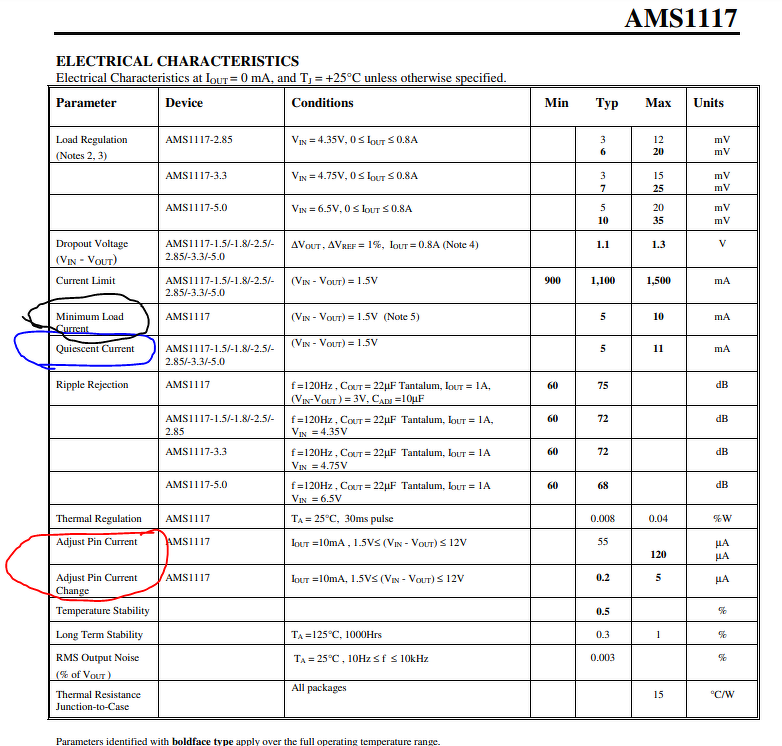 „Note 5: Minimum load current is defined as the minimum output current required to maintain regulation. When 1.5V ≤ (VIN - VOUT) ≤ 12V the device is guaranteed to regulate if the output current is greater than 10mA.”