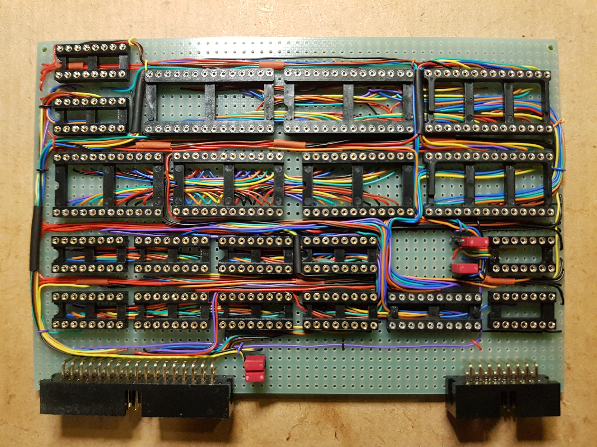 ![]() Eredetileg 3k ROM + 1k RAM (3x 2708, 8x 2102) volt a terv de a sok ures hely lattan kozben adtam hozza 'par' aprosagot. Teszteles alatt, ezert nincsenek benne az IC-k.