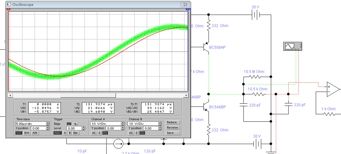 Kijavítottam, de véletlenül rosszabb lett és lassult valamelyest, 920kHz-ről 880-ra csökkent a vivő. Így lezár a második diff fokozat, de nincs jelentősége.