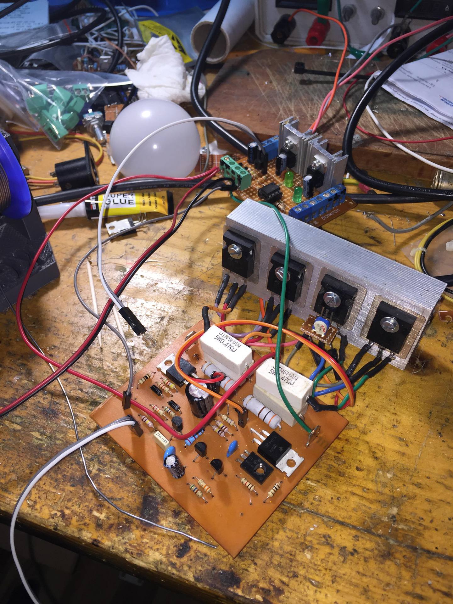 Sziasztok! Szeretnék egy kis helyzetjelentést adni/ bemutatni. Mivel nem nagyon került komolyabb beszélgetésre az én kis ocl erősítőm, hát nekiálltam. Igaz sajnos, megfutott egy szett végtranyó, meg meghajtó, de hát tanuló pénz, a mellékletben látszik a clippes áramkör is, ami teszi a dolgát. Igaz éjszaka van szóval videóra nem tudtam venni, de majd foly.köv. Kivettem a diodákat, kapott egy superdiodát, visszacsatolásban a 47k 22k ra csökkentve, hidegen 1mV esik rövidzárt bemenettel, terhelés nélkül, melegen 1.2-1.3mV. Fülre kicsi hangszórón, jó, bemeneti kondit növelnem kell a van egy "high cut" benne, majd idővel. Érdekesség, mind a két panel ugyan úgy volt piszkálva, még is más más alkatrész szállt el, a végén a 2 darabból lett egy, de legalább ez tuti, igaz most tip35c-tip36c a vége, a másiknak jutnak a kemény fiuk 2sc5200+2sa1943, csak nem tudom mekkora probléma lesz egy híd üzemben. Tudom nem nagy cucc amit csináltam, alakítottam, de gondoltam kár lenne veszni hagyni az eddig befektetett munkám, időm. Lassan-lassan kialakul.