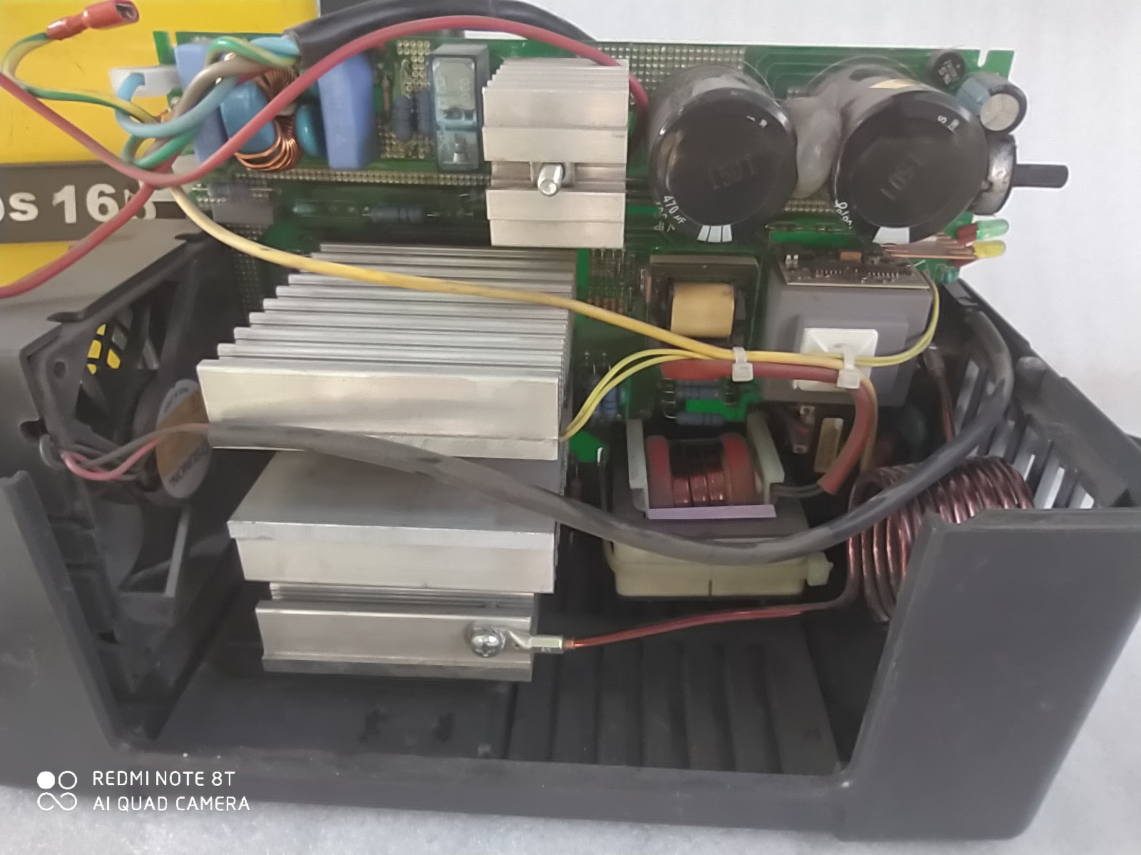 Két éve vásároltam egy Iweld Gorilla Pocket Force 200 MMA gépet. A gépet csak alkalomszerűen használtam kb 30-50db pálca ment le rajta összesen. Minap az első ívfelvételkor kikapcsolt és azóta nem kapcsol be, csak a venti megy benne. Ismerősömnek van egy most vásárolt ezért elkértem gondoltam kiderítem mi mehetett benne tönkre, de megszívtam mert az új bár ugyan olyan néven fut de köszönő viszonyban sincs a régivel. Teljesen megváltoztatták a belsejét. Ügy sejtem gond lehetett a régi konstrukcióval, másként miért ölnének bele pénzt, ha egyszer valami bevált. Gondolom kapcsolási rajzot beszerezni esélytelen. Biztosítékot sem láttam benne, pedig csak kellene lennie valahol ha máshol nem a nyákon, ekkora bagatell dolgot csak nem követnének el.