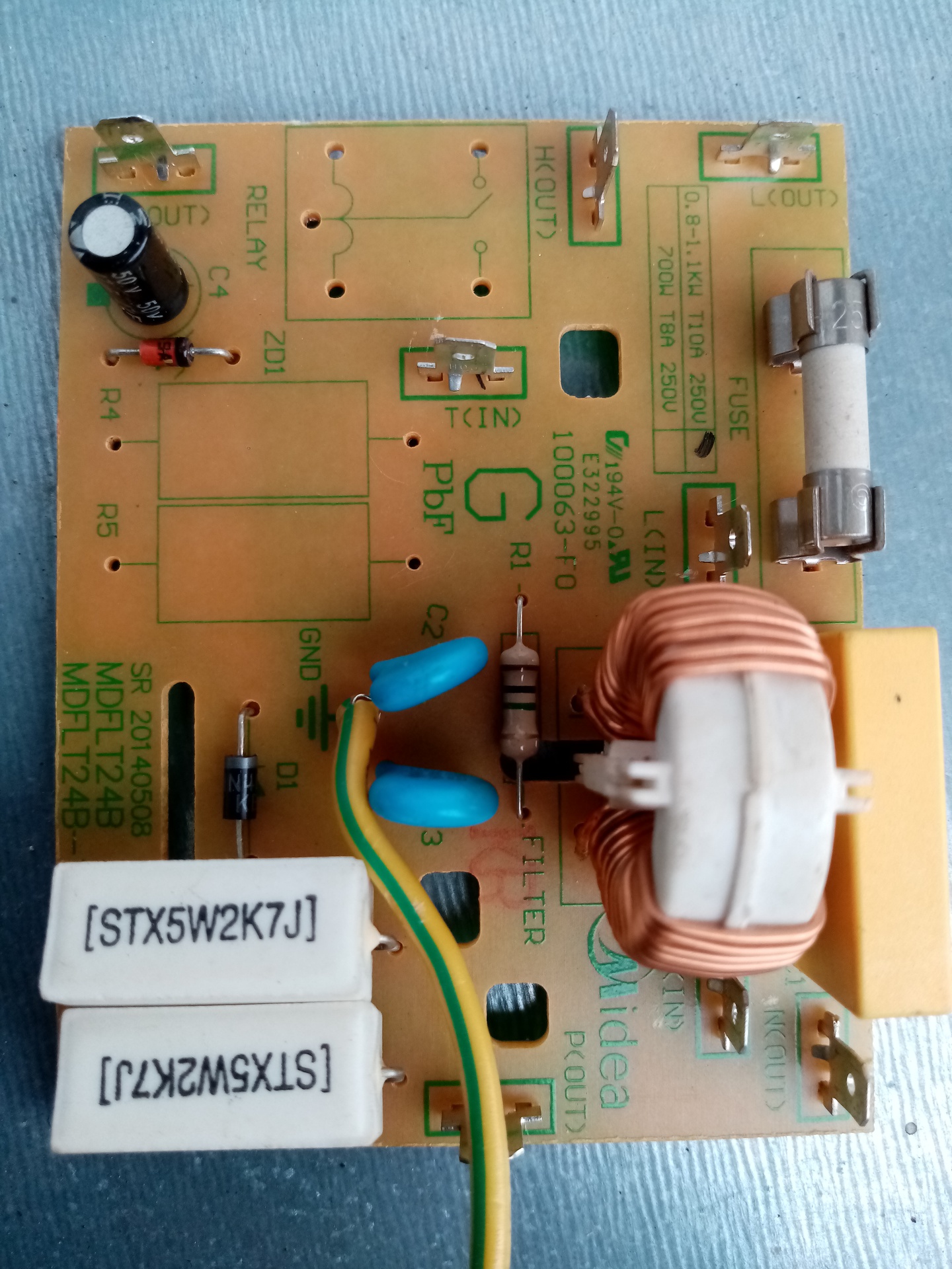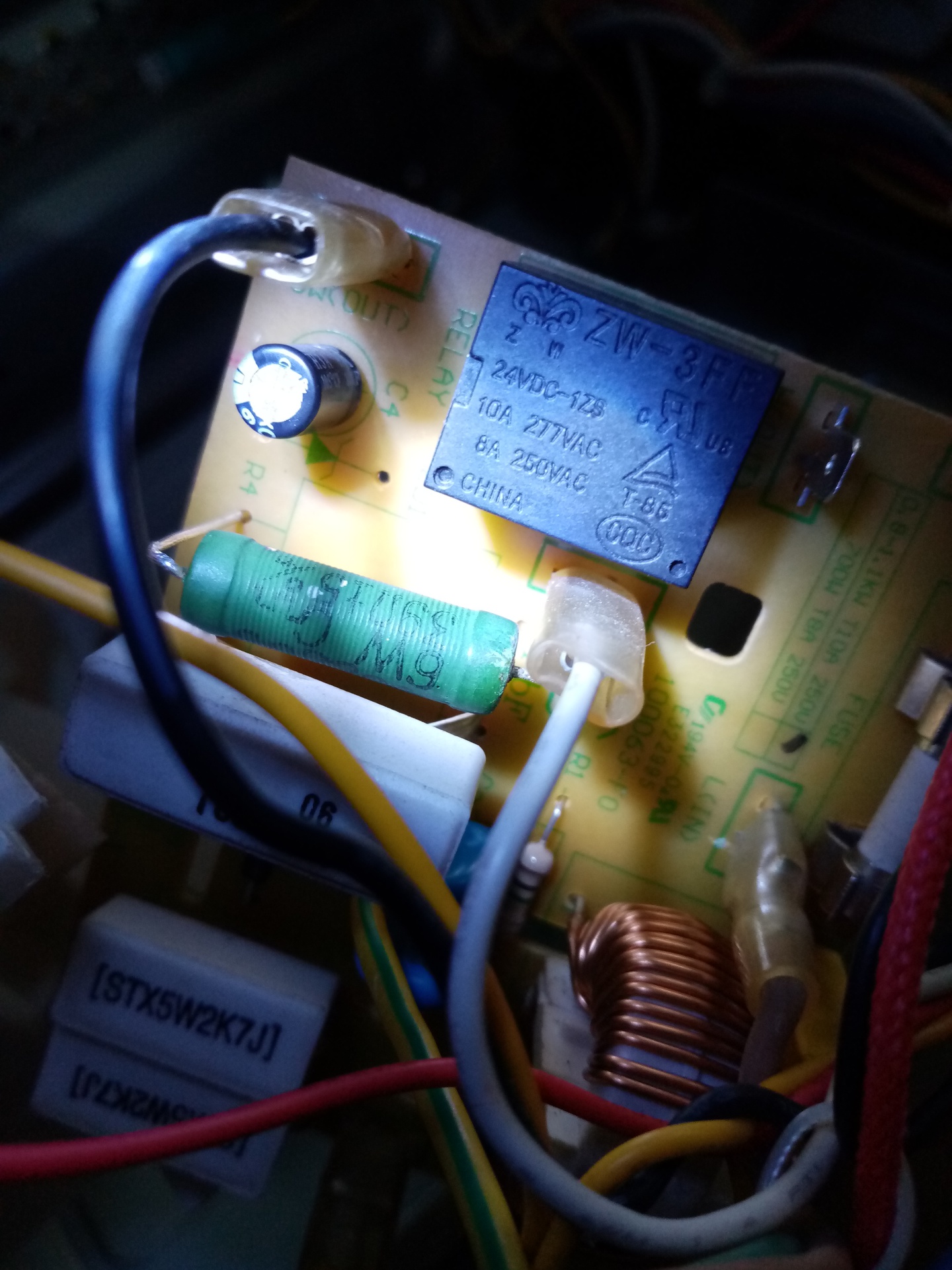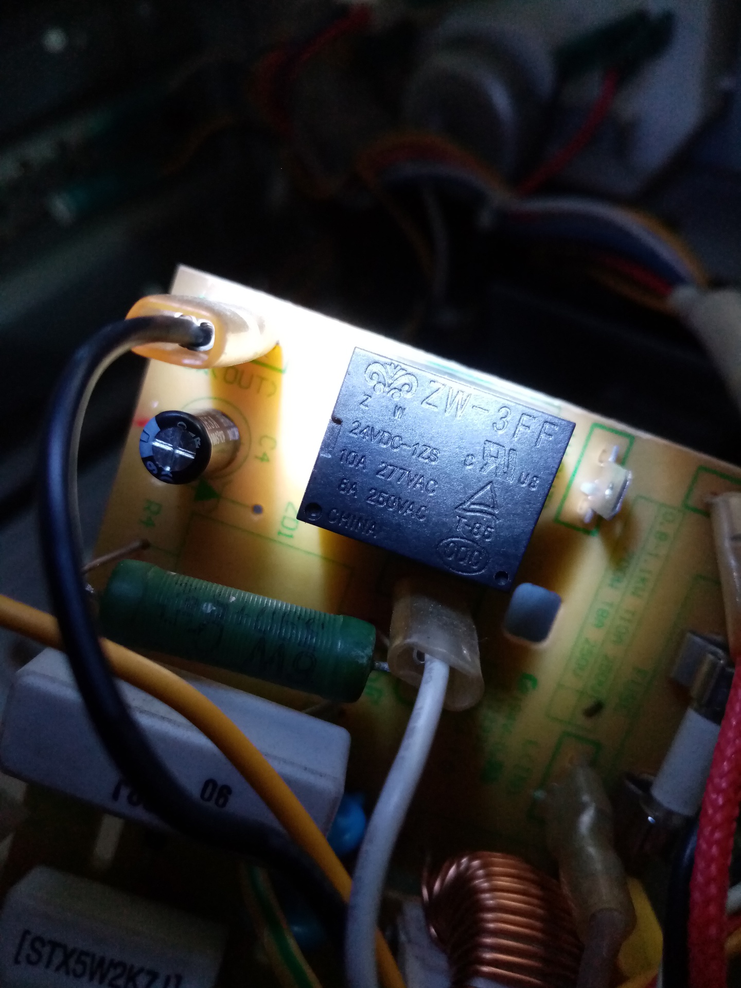 Szia. A relét kivettem szétszedtem ellenőrzés céljából az jó. X2 kondenzátor 330nf, STX5W47Ω 2db ellenállás szakadt. Fentebb vannak képek a panelról. A ZD1 zéner diódának gondolom 24V-osnak kellene lenni-e mert a relé is 24V-os. Köszönöm szépen a segítséget.