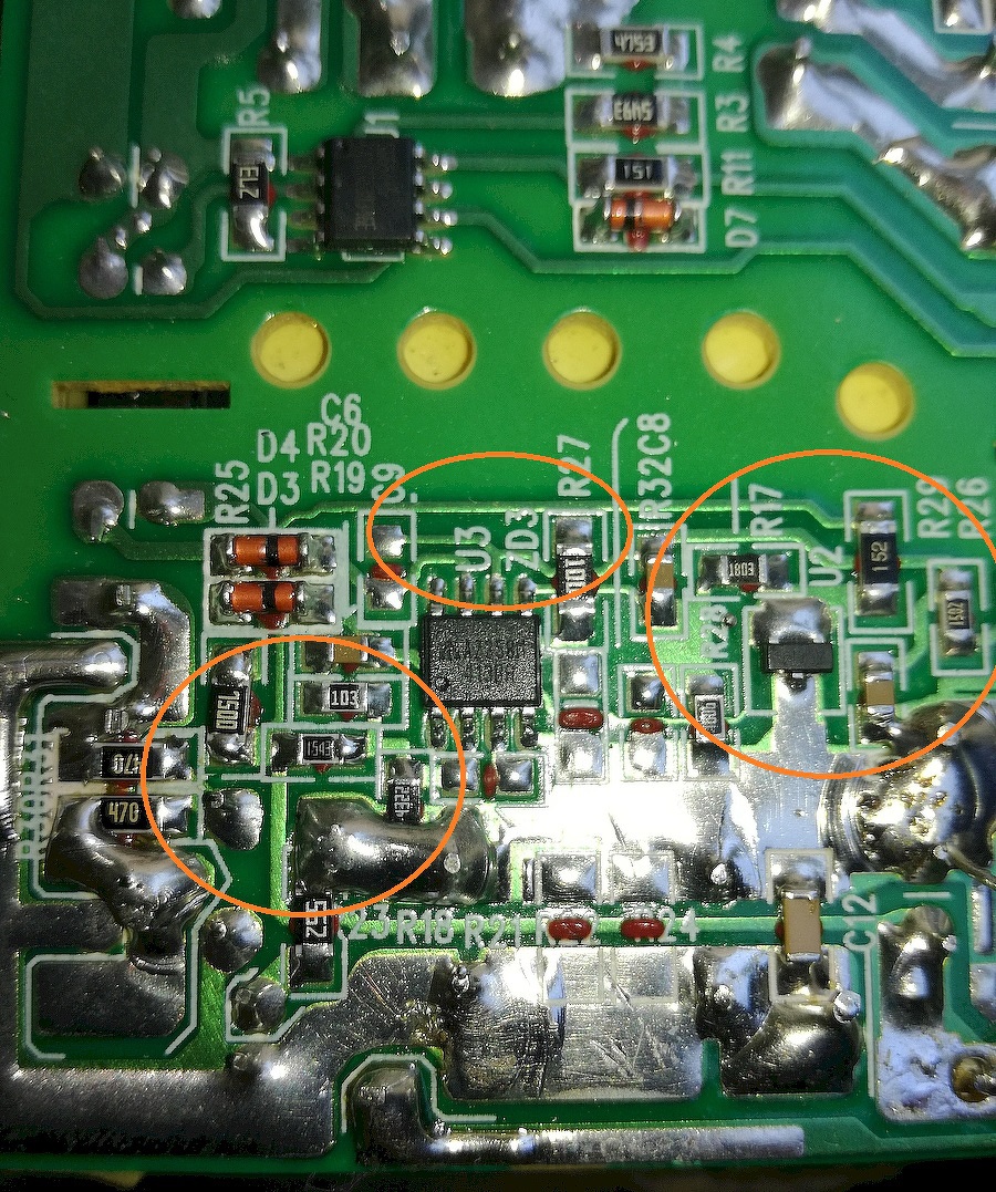 Az R26 értéke 15kΩ. Ezt fogjuk módosítani. Úgy kezdjük, hogy mérd meg a jelenlegi kimenő feszültségét a tápnak. Ez után egy 100kΩ-os ellenállást forrassz az R26-al párhuzamosan. Vigyázz a forrasztással, nehogy valami bajt csinálj. Utána ismét mérd meg a kimenő feszültséget. A 100kΩ elég nagy érték, ezért ha nem a kimeneti feszültség osztó tagja lenne az R26, akkor sem okoz galibát. De vélhetően az lesz. Bár referencia feszültség függő, de 10V körül kell kapnod kimenő feszültséget. Ha ettől eltérő az nem baj, csak pontos legyen a mérés. A mérési adatokból ki fogom számolni (megosztom a képletet is) a pontos értékét a beforrasztandó ellenállásnak. Ha nincs kéznél 100kΩ, akkor valami 68kΩ és 330kΩ közötti érték kerüljön most bele.