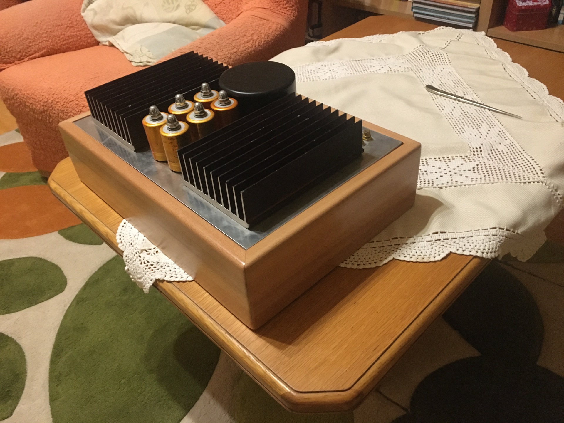 Leginkább a "ki mit építettbe" raktam volna de mégiscsak itt a helye szerintem. Anno "hihghand" fórumtárs javasolt itt a topikban egy apró módosítást, amit ki szerettem volna próbálni. Ezzel a módosítással nagyobb teljesítmény vehető ki az erősítőből kisebb nyugalmi árammal úgy, hogy közben megmarad az eredeti hangzás. Nemrégiben felhívta a figyelmünket, hogy már külföldi aukciós oldalakon, is kaphatók ilyen kittek. Igy hát rendeltem belőlük egy párat, kipróbálás gyanánt. Az elkészült példányt meghallgatva megállapítottam, hogy valóban tudja az eredeti hangzásvilágát. Olyannyira, hogy még az eredeti mélyvágását is ugyanúgy produkálja. Ebbe már szándékosan nagyobb kimenőkondikat raktam, hogy biztosra menjek. Az eredetiben anno 20.000µF volt, ebbe 33.000µF került, a bemenetre pedig 10uF, de sajnos 40-50hz től lejjebb a mélyek már megszűnnek létezni. Viszont 40Hz-től felfelé valami elképesztően szépen szól, ugyanúgy mint az eredeti, mindezt 50mA-en és jó 20-25Watt teljesítménnyel. A hűtőbordákból szerintem egy is elég lett volna, ezek éppen, hogy csak langyosak, egész napos használat mellett. A kittben egész jó alkatrészeket küldtek: IRFP448 végFET-ek TIP41C és 2SA1015-ös meghajtók. Aki nem szereti a forró erősítőket, annak érdemes kipróbálni, kisebb hangfalakon még a mélyhiány sem lehet zavaró.