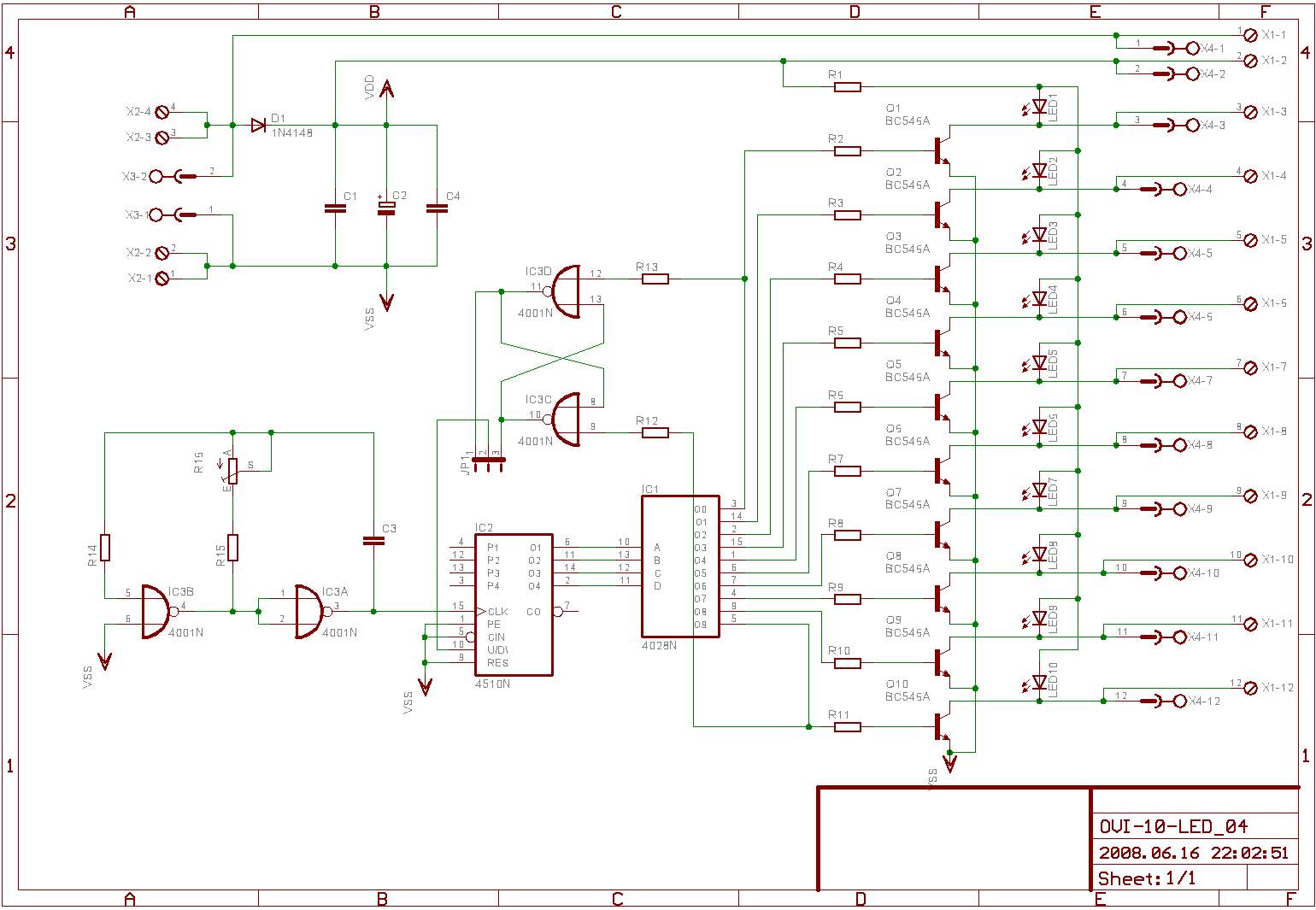 vetnétek egy pillantást a nyákomra, hogy jól van-e megtervezve? első saját tervezés a tetején a ledeket szalagkábelen tervezem kivezetni, így a panelnek teljes a mobilitása és könnyebben beépíthető 5.25ös helyre a tükrözés még nem történt meg (nem tudom, kell-e, nem néztem még meg, hogy merről áll az ic )itt a nyáktervem: nyákterv itt pedig a kapcsolás: kapcsolás annyi módosítást már tettem, hogy a szélén futó +12V-os ágat nem olyan hosszan vezetem el, hanem rövidebb úton