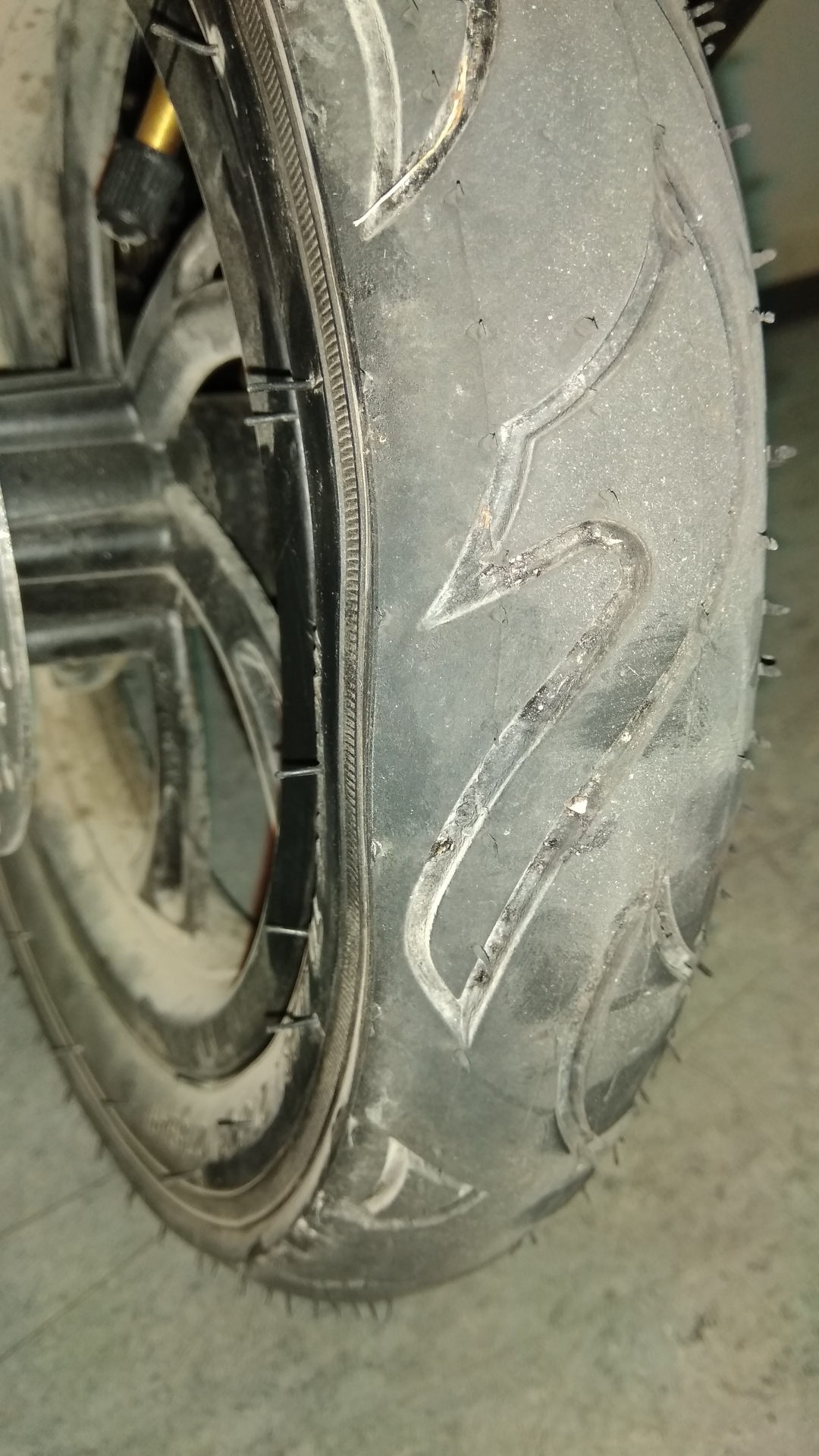 Oké, akkor a külsőt "megjelölöm". Ez egy elektromos roller hátsó kereke. A boltban levő hasonló rollerek sokkal kisebb kerékkel vannak ellátva, ennél nagyobbat pedig nem tudok beépíteni. Megpróbálok más márkájú külsőket vásárolni, egynek ki kell bírnia ezt a terhelést... Az egész rollert felújítottam, hajtottam már 320km-t, kár lenne emiatt nem használni.