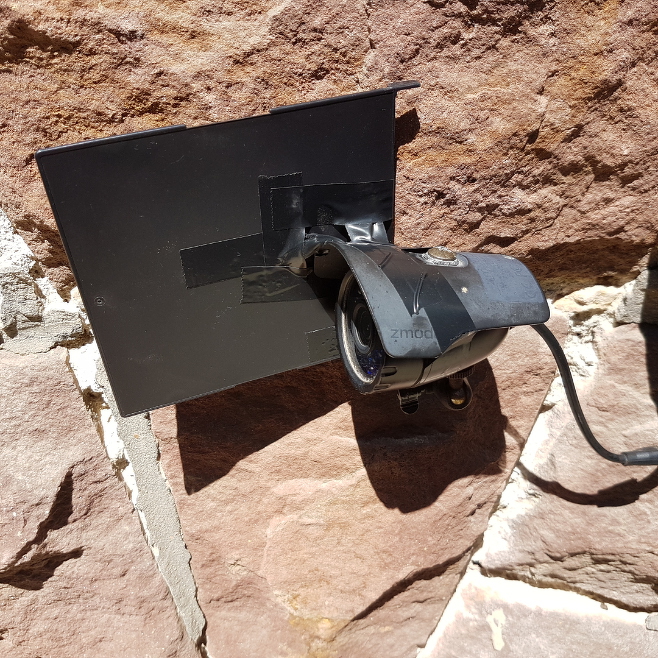 Első körben én azt nézném meg, hogy az esti időszakban, ezzel az "árnyékolással" javul-e a kamerád éjszakai képe. Ha igen, akkor a szigszalagot kiváltanám két pici lemezcsavarral. Megfúrnám a kamera felső fém védő elemét a felirat és a perem között úgy, hogy rácsavarozva a műanyagot a lehető leg függőlegesebben álljon.
