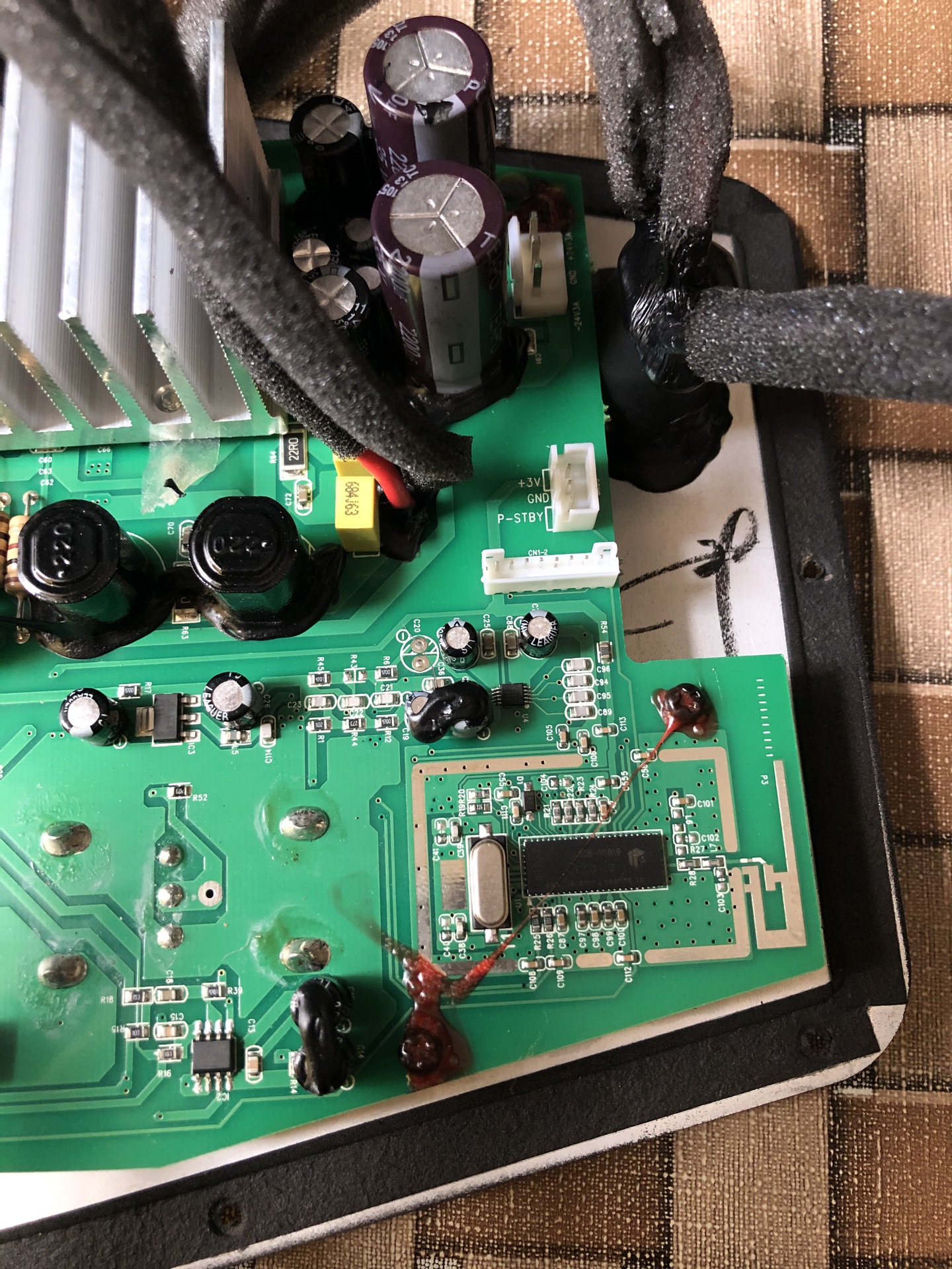 Adott egy JBL Cinema SB400 hangprojektor szett sub része ami aktív, viszont semmilyen bemenettel nem rendelkezik, csupán bluetoothon keresztül kommunikálna a hangprojektor résszel ami viszont nincs. A kérdésem az lenne, hogy valamilyen módon lehetne-e bemenetet csatlakoztatni rá, a panel melyik részén keressem a megfelelő pontokat, ha a csatolt képek alapján lehetséges egyáltalán a javaslat? A puffer kondik 2200µF értékűek, ezeket is érdemes lecserélni ha jól sejtem?