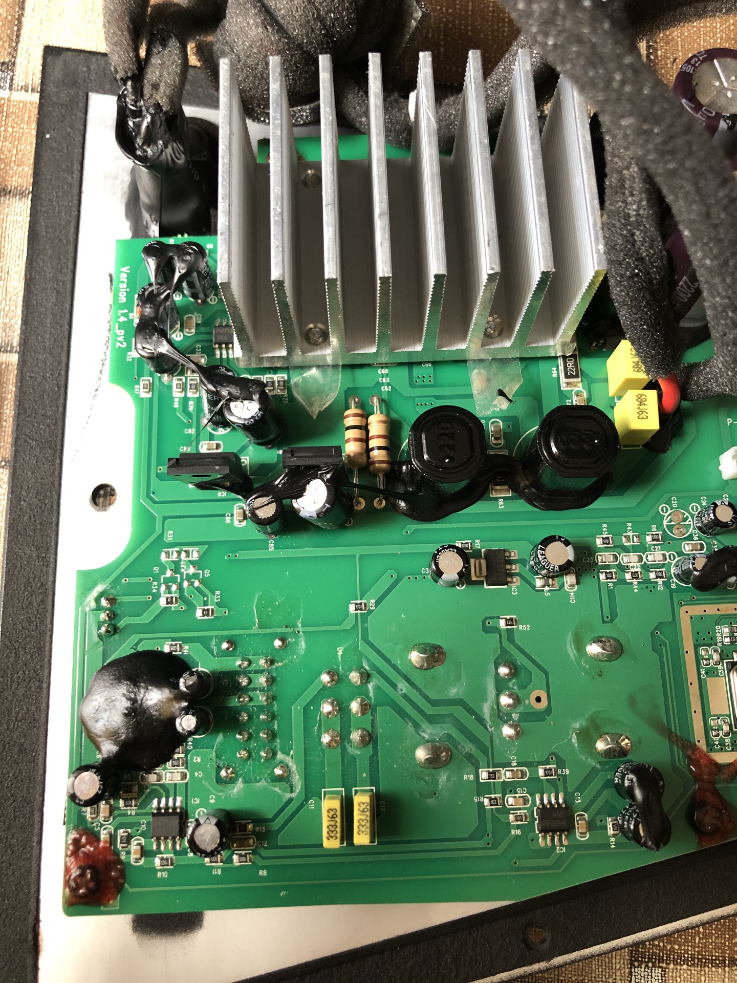 Hát igen a tranyók minősége kérdéses...ha eredeti akkor elvileg gond nélkül el kellene bírnia ekkora feszültséget.Kérdéses még mekkorák a kondenzátorok...ha csak 63voltosak az is elég necces.Ami sorjának tűnik az szerintem hővezető paszta alatta.