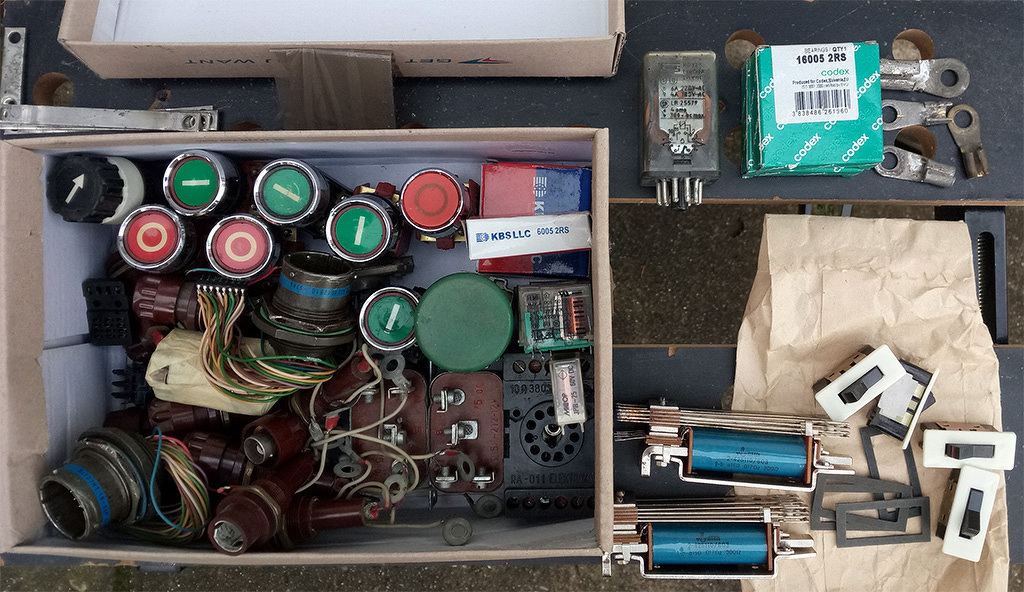 A csapágyak (2+2 db.), a jobb alsó kapcsolók és a maszkolószalagba csomagolt biztosítékok újak, a többi használt. A biztik 8x50-es méretűek, cirill betűkkel V2A vagy V2D és 84 olvasható rajtuk.