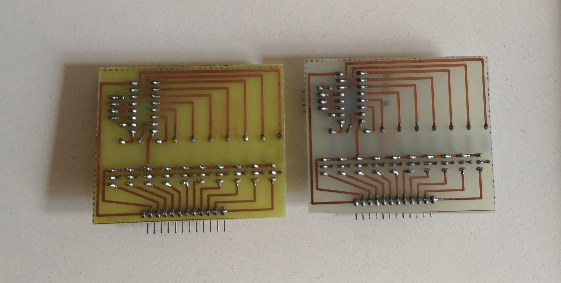 Mindkettő epoxy alapú hordozó. Nagy valószínűséggel a jobb oldali a frissebb. Újabban ilyen színe van a lapoknak, egyre ritkább a bal oldali sárgás.