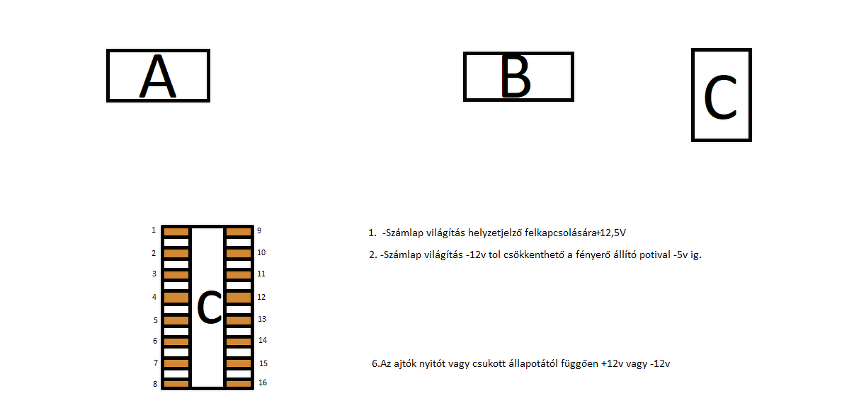 Vannak azok a pontok amit utoljára bejelöltél. Azokat kell végigkövetni a fólián (multiméterrel mert az kimutatja ha szakadás van). Elvileg a másik vége a kocsiba van azon a csatlakozón amit muszerfal.jpg nek neveztél https://www.hobbielektronika.hu/forum/getfile.php?id=359134