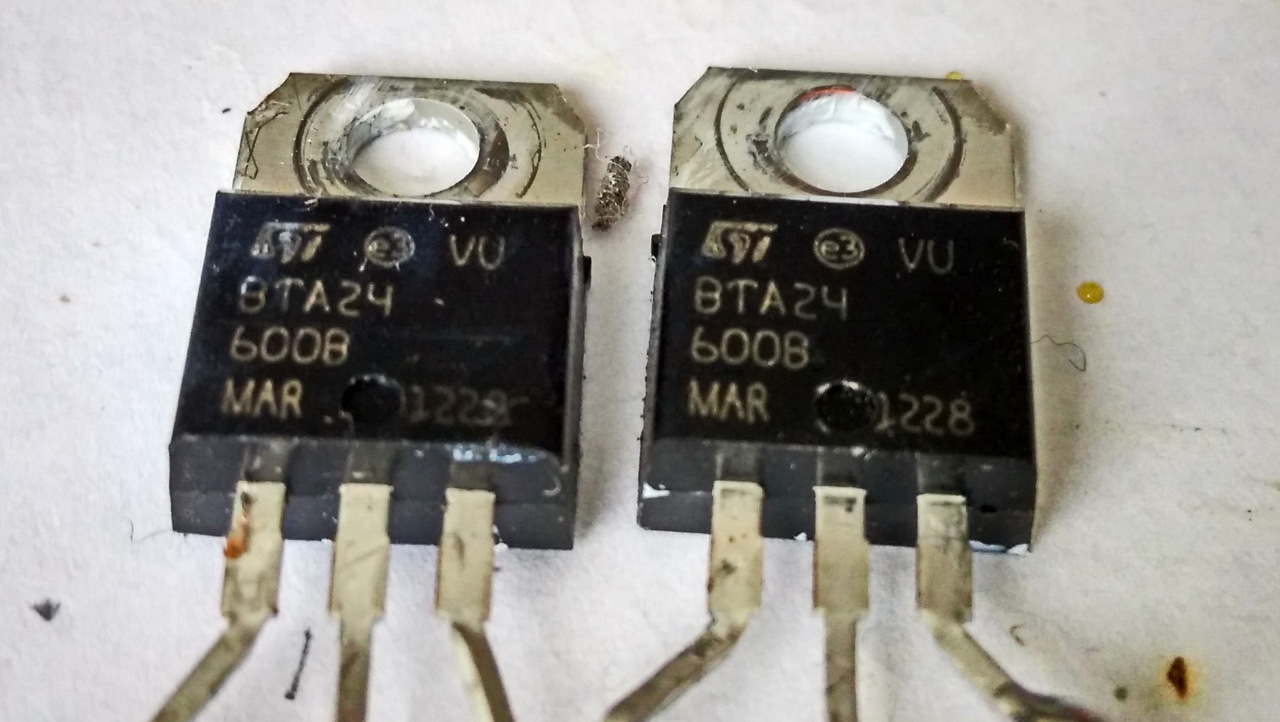 16A -es tirisztorok voltak benne eredetileg (BTA16-600B), amiket cseréltem 24A -esekre (BTA24-600B).