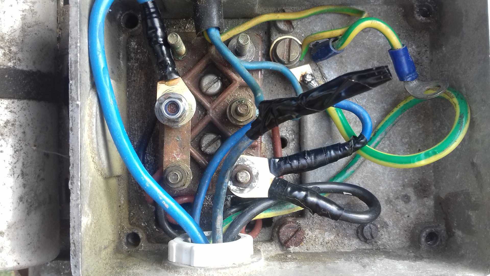 A motor kapocstáblája szét volt szedve és meg sem volt a kapocstábla csak a jelölt 6 vezeték,ezért wago-val raktam össze.