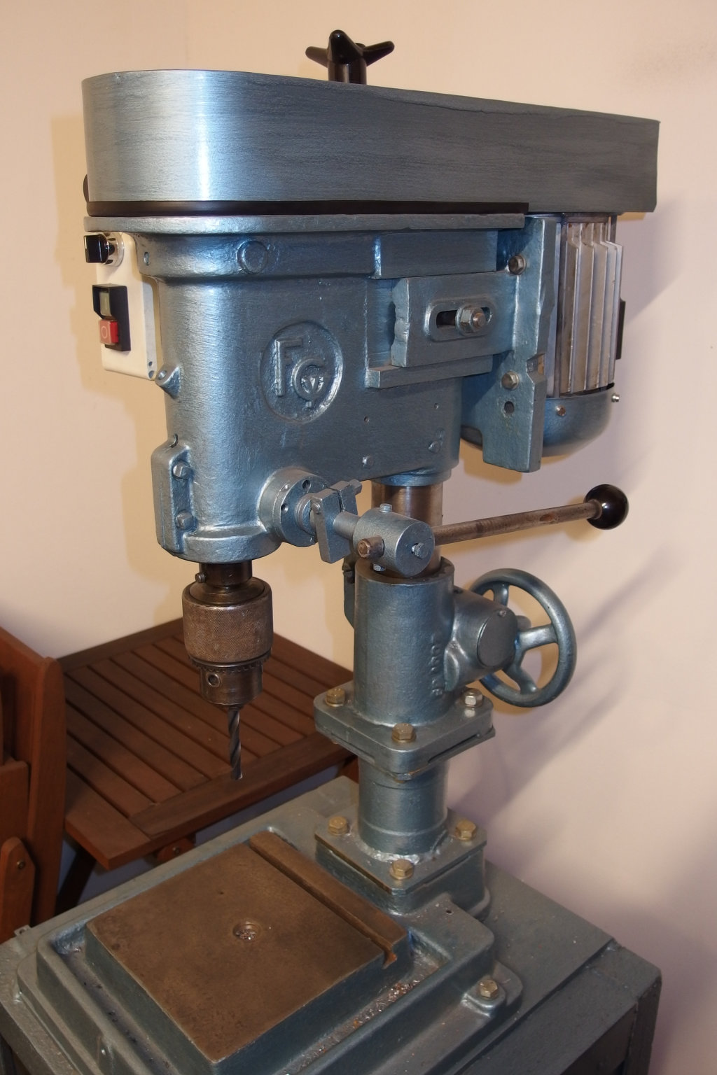 Felújítottam az állványos fúrógépemet. A festésen és kenésen kívül kapott egy új motort meg az ékszíjra egy védő burkolatot. Illetve egy saját készítésű frekvenciaváltót. A képek elkészülte óta már a koordináta satu is a helyére került, illetve egy helyi megvilágítást is kapott.