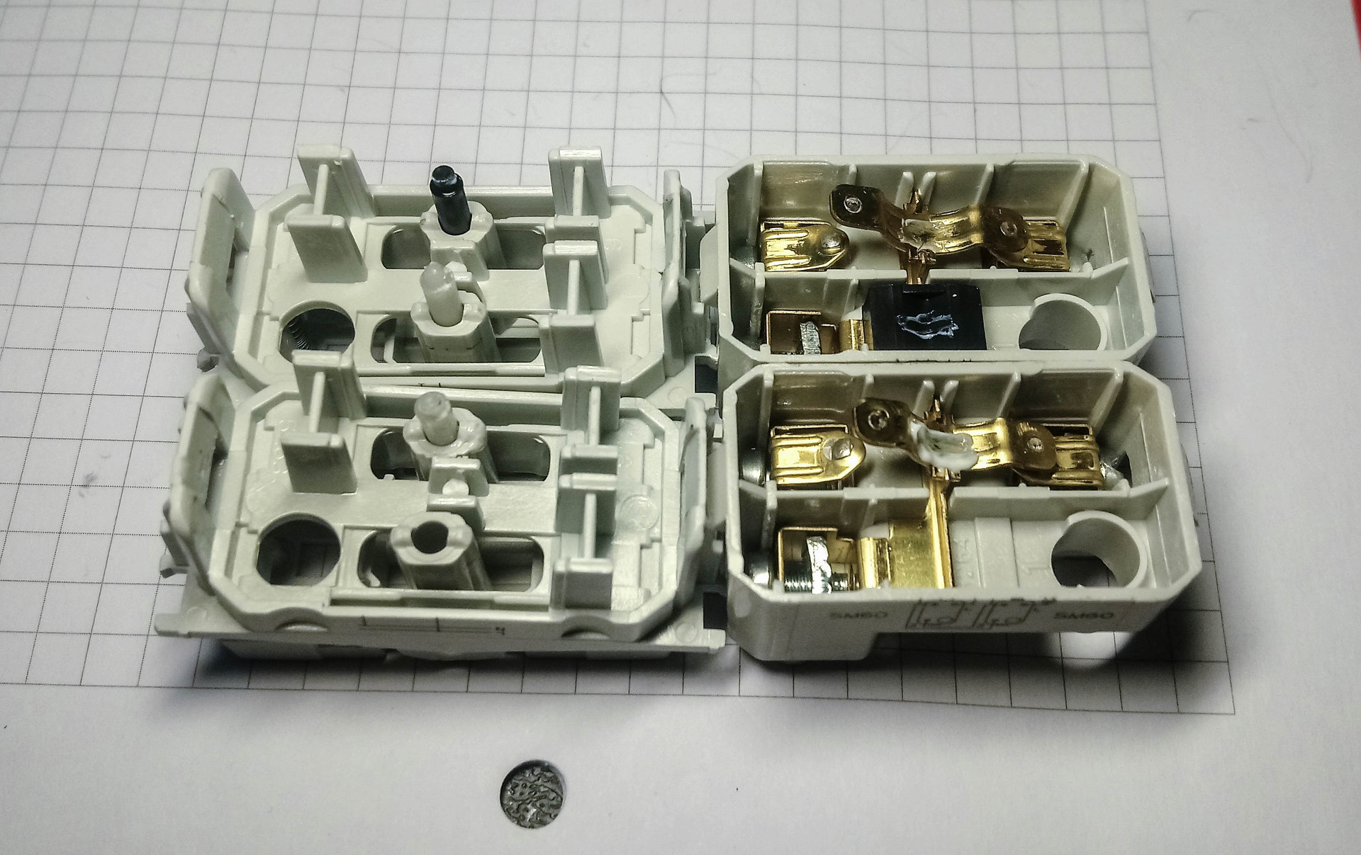 A fölső a redőnynyomó, alatta a 106-os kapcsoló. 3 rugóban, illetve 2 műanyag elemben tér el. Nekem megéri ezeket pótolni, egy kapcsolópárra vetítve 3700Ft a különbség, és kell belőle majd pár darab...